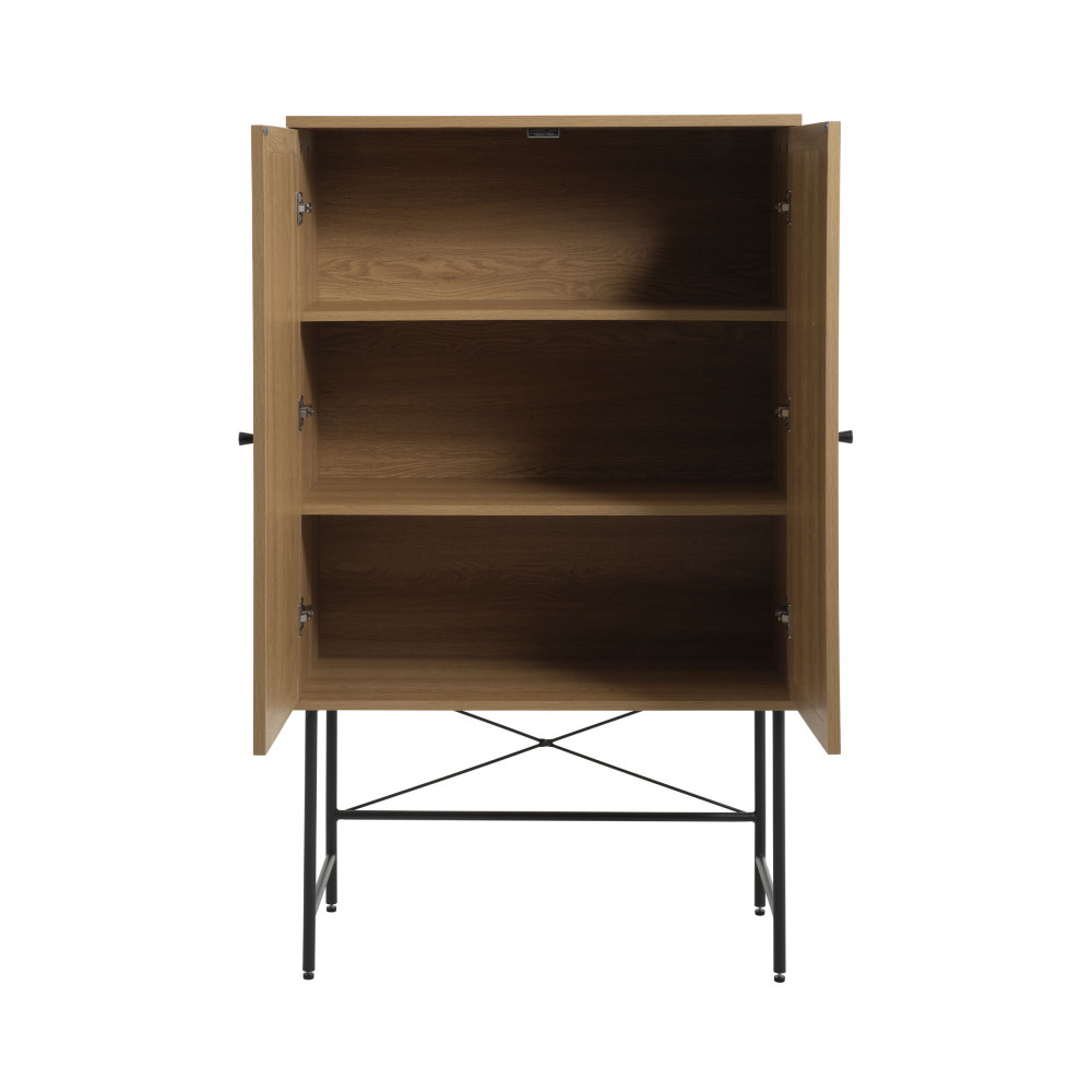 RINTO Buffet haut 2 portes bois et métal H135cm