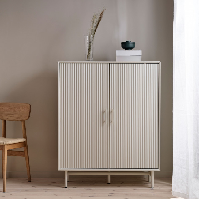 Apportez une touche élégante et moderne à votre intérieur avec Jura, le buffet haut 2 portes en MDF et métal H125cm. Cet harmonieux mélange de MDF pour la structure principale et de métal pour le piètement donne à ce meuble une véritable identité contemporaine. Son design sobre saura s'adapter à tous les styles de décoration sans jamais dénoter.