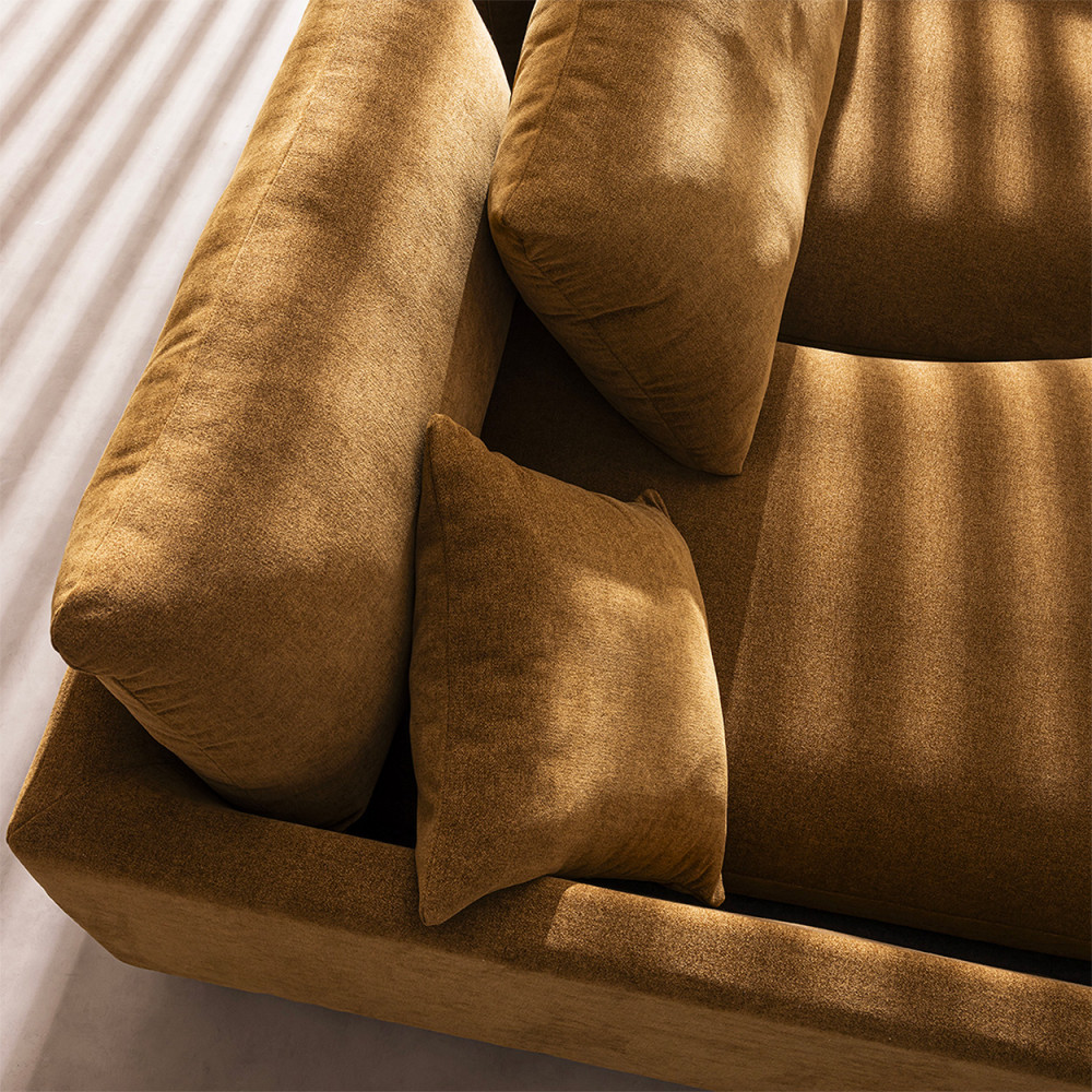 - Très accueillant, ce canapé cocooning se dote de bords arrondis et d'une assise bien épaisse avec accueil moelleux, et s'accompagne de plusieurs coussins pour un confort accru