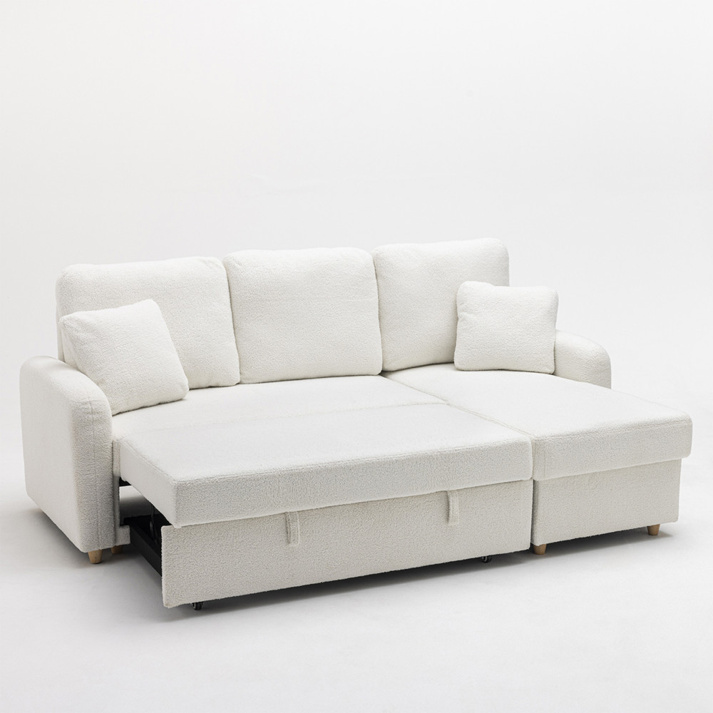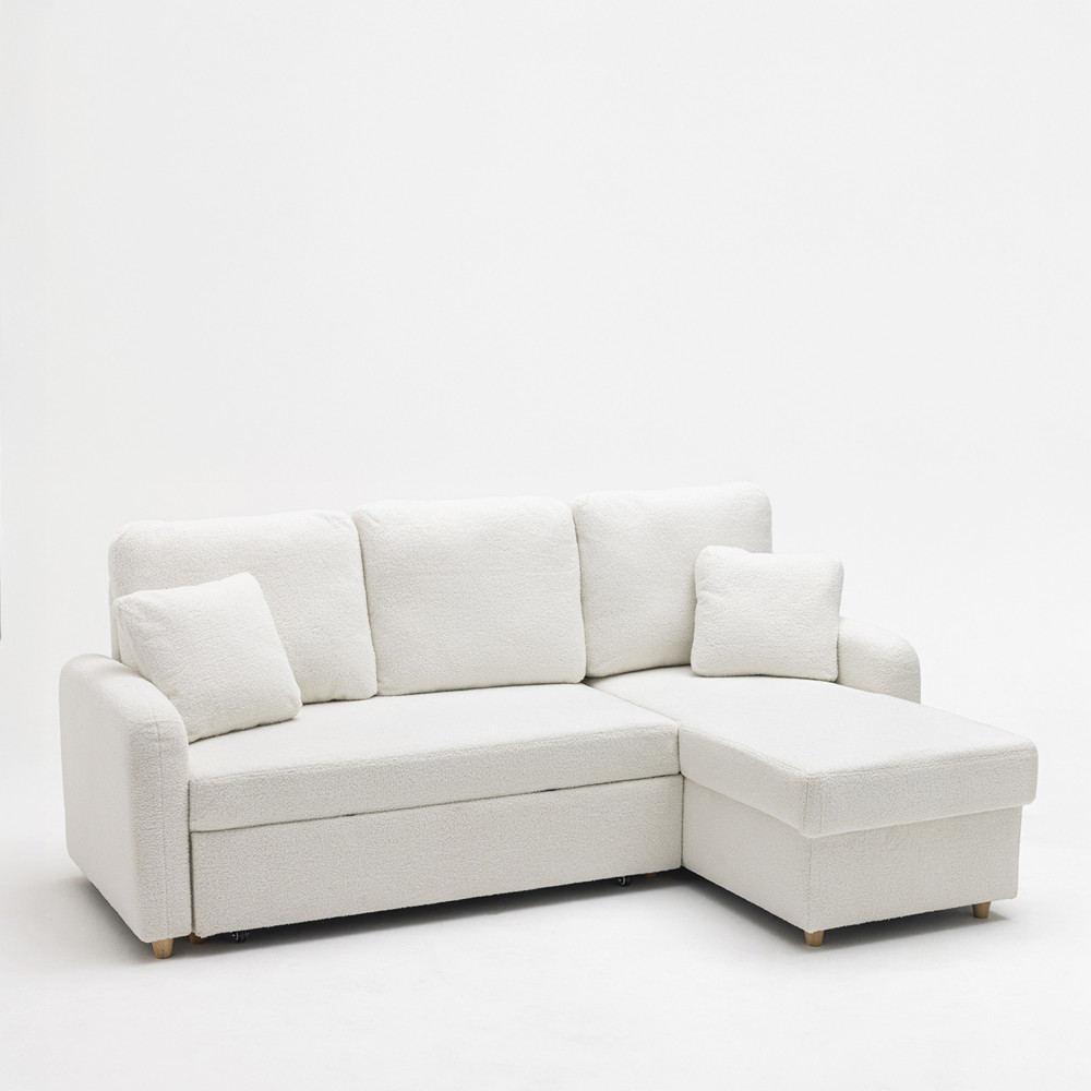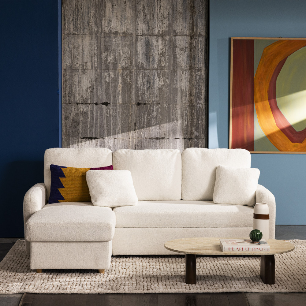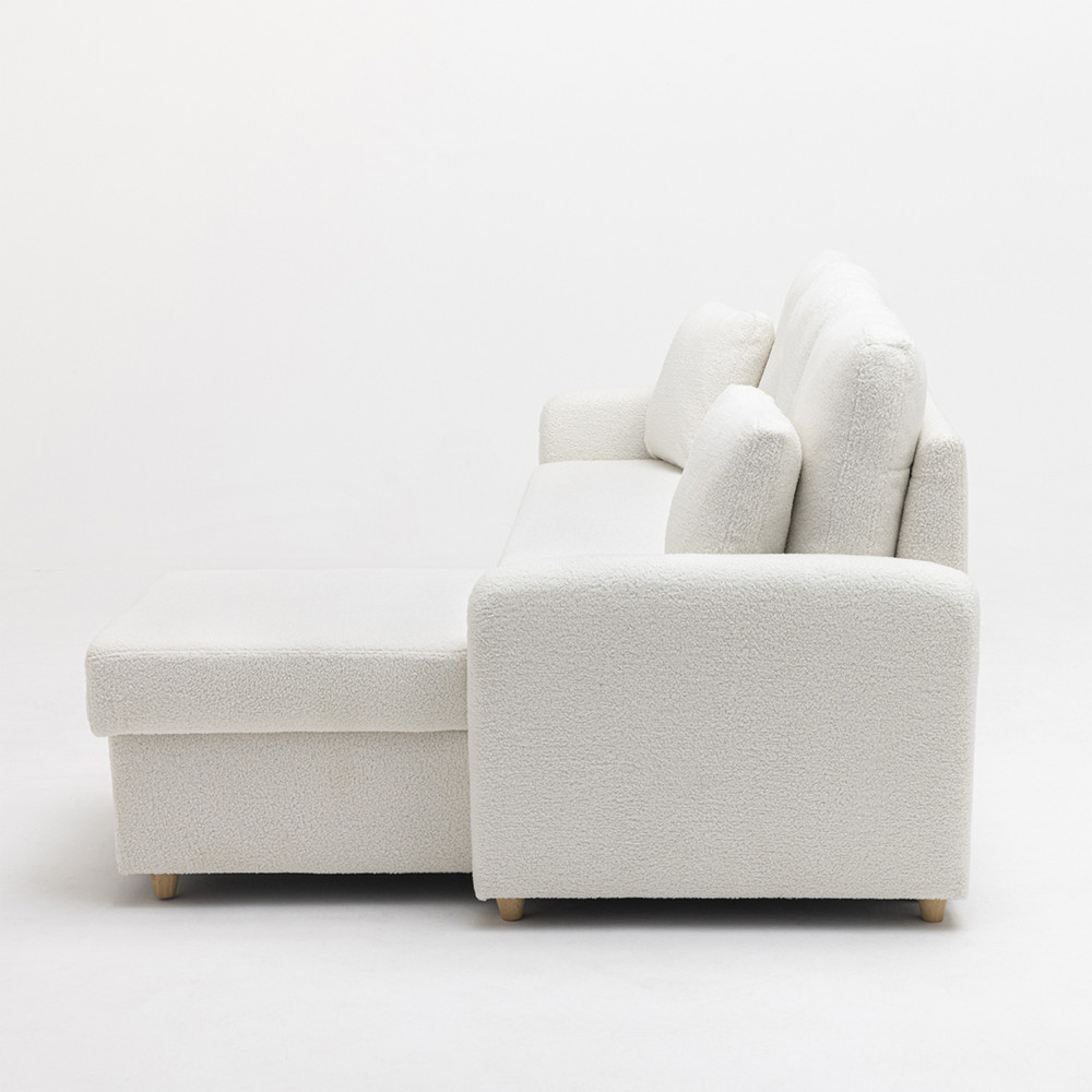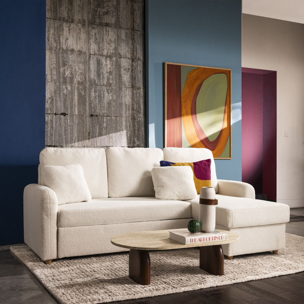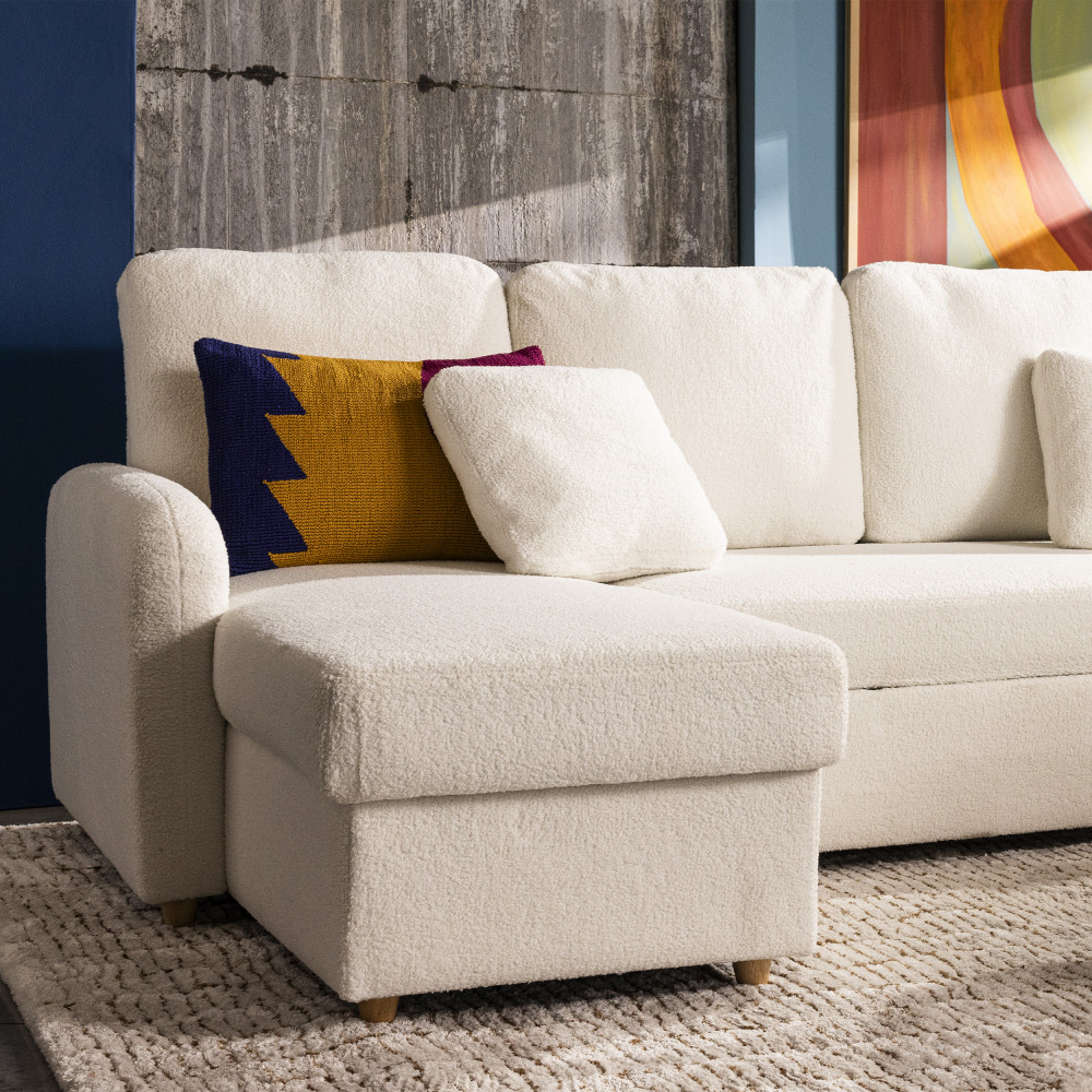 MATERA Canapé d'angle réversible convertible 3 places en tissu bouclette avec coffre