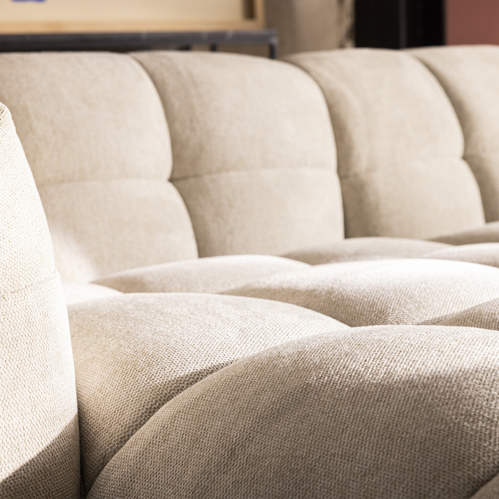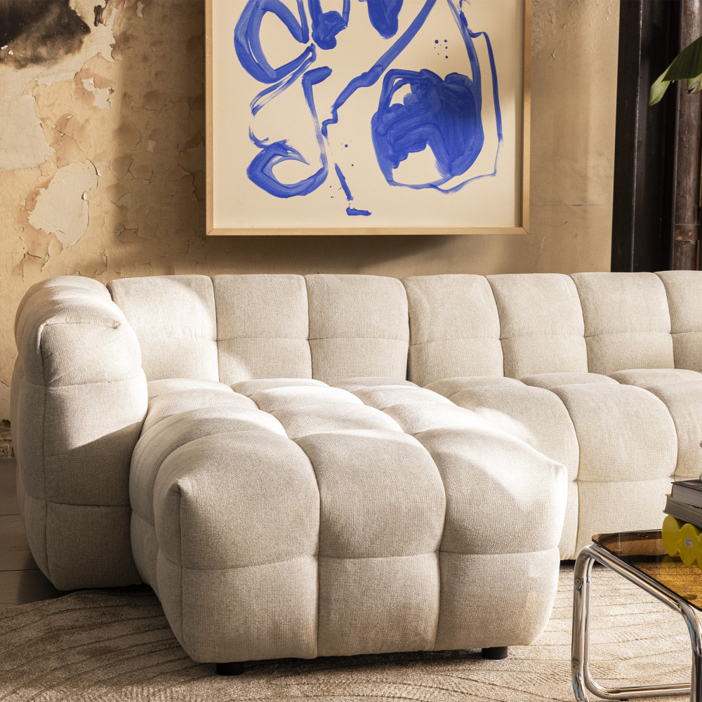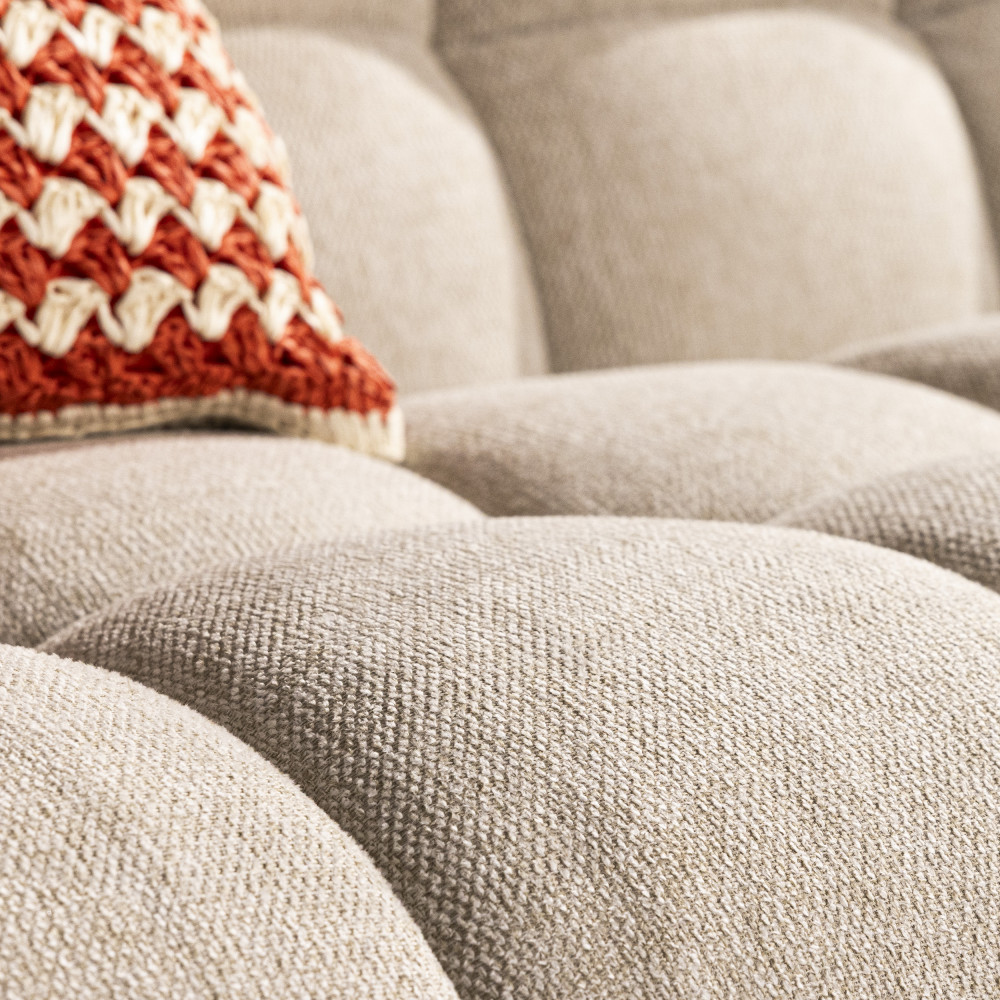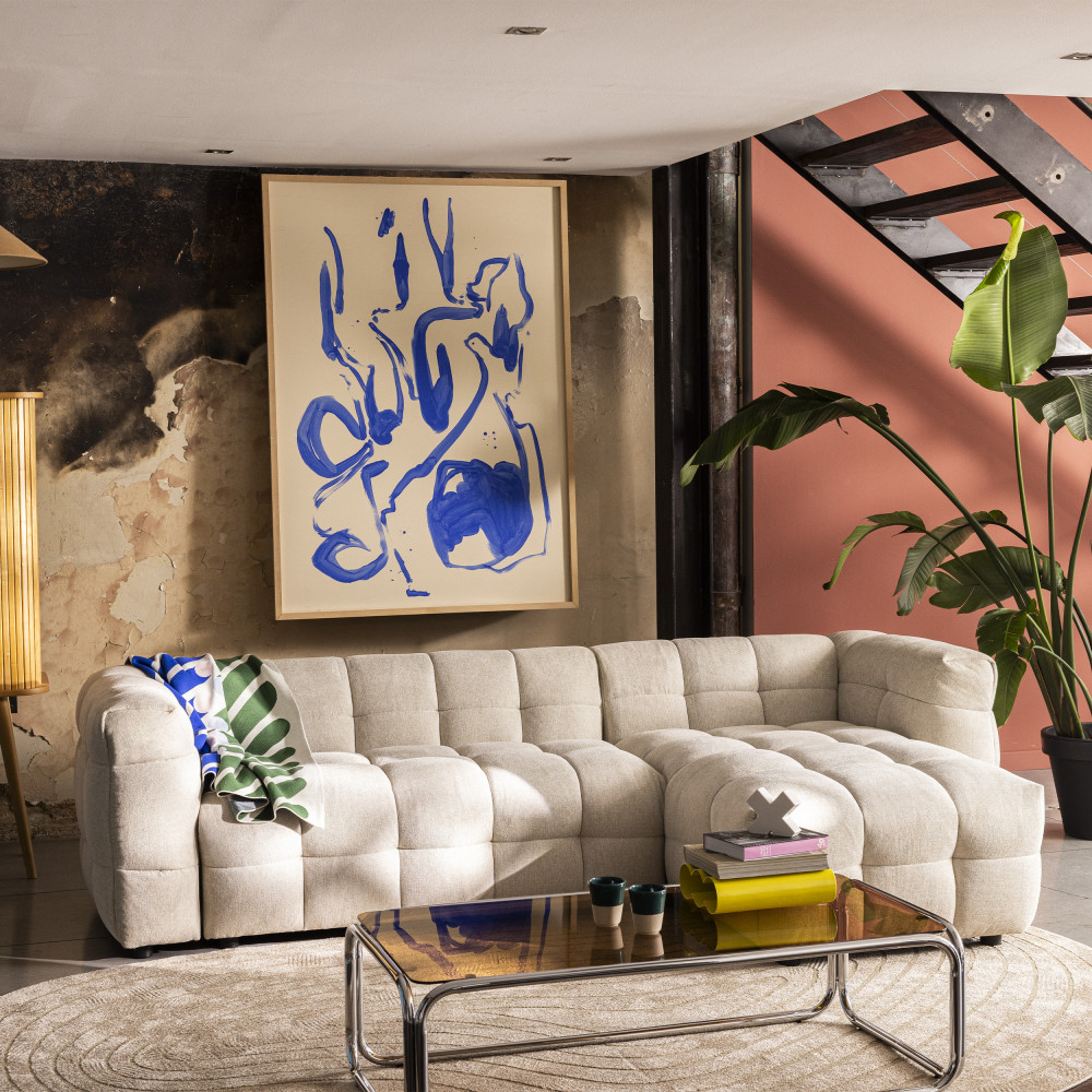 On aime aussi le design de ce modèle de style contemporain, élégant sans en faire trop. Entièrement matelassé, y compris sur les faces extérieures, il est doté d'accoudoirs intégrés extra-larges et d'un dos lisse. Voilà un canapé cocooning à souhait : on n'a qu'une envie, se lover dedans, n'est-ce pas ?