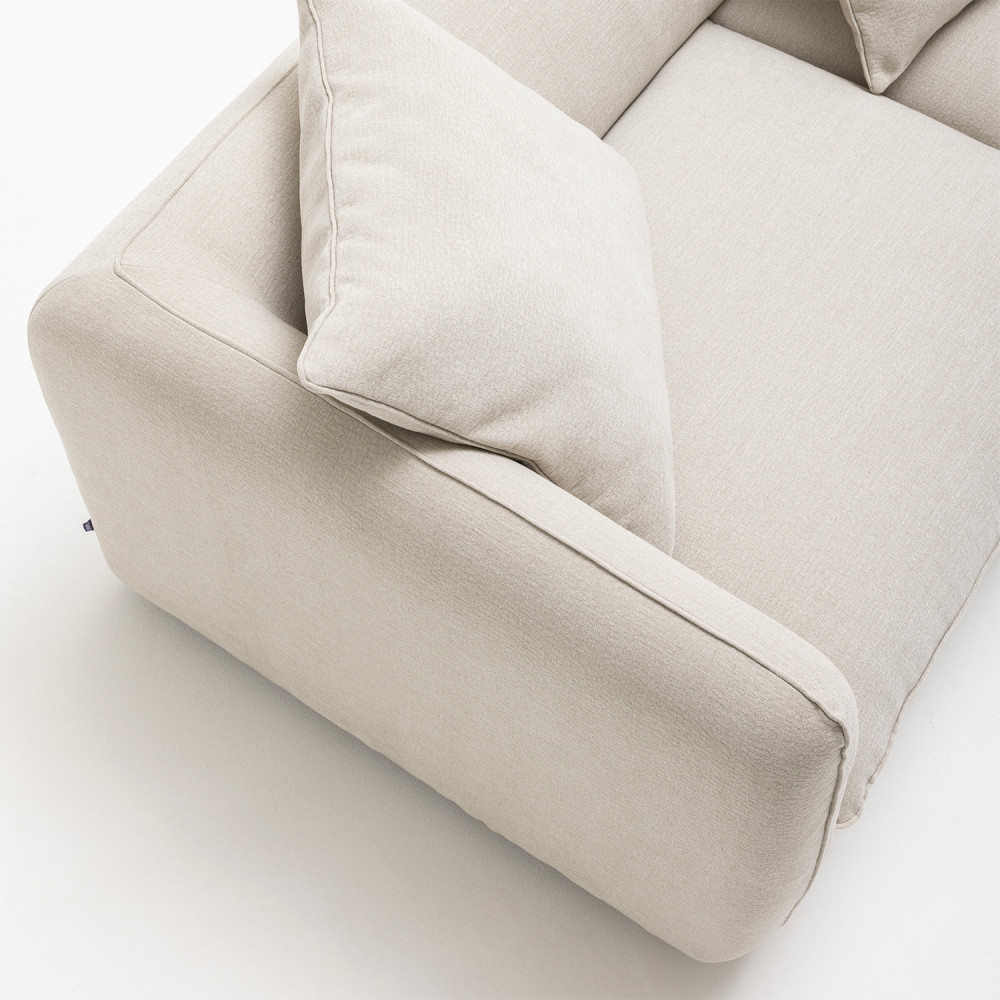 Une double info technique pour finir : le canapé Popi est garni de mousse polyuréthane et ouate de densité 23 kg/m3 au niveau du dossier, tandis que son assise est quant à elle garnie de mousse polyéther, fibres de polyester recyclées et ouate de densité 28 kg/m3.