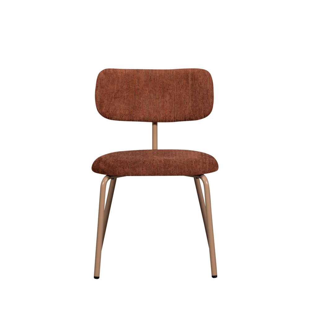 Ces chaises peu encombrantes de 75 x 48 x 53 cm sont faites en tissu et métal. Leur design est simple et épuré, avec une assise arrondie, un dossier rectangulaire aux bords arrondis et un piètement tout en finesse.