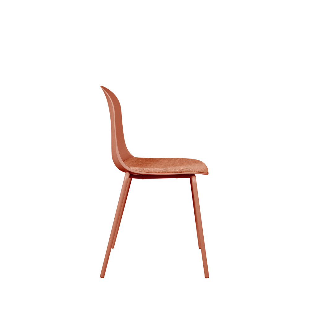 Avec leur rembourrage en mousse, ces chaises n’ont qu’une seule mission : vous faire oublier que vous êtes assis depuis des heures. Oui, confort maximal garanti ! Leur style contemporain joue la carte de l’élégance sans se prendre trop au sérieux : parfait pour moderniser votre salle à manger, ou votre bureau. La douceur du tissu se marie à merveille avec les pieds en métal terracotta, apportant une touche chaude et originale qui ne passe pas inaperçue.