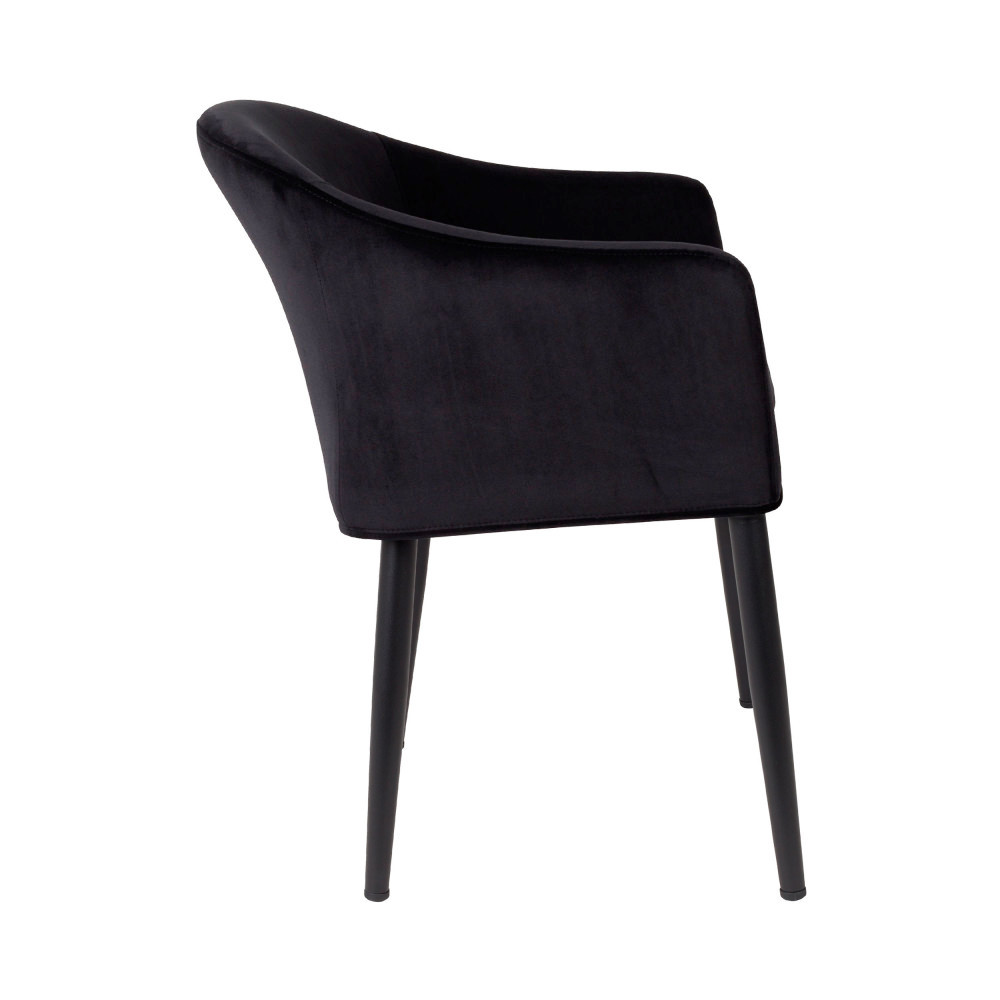 Le fauteuil de table design en velours Catelyn s'impose comme la référence en termes de confort, de design et de tendance. Il est composé d'une coque en contreplaqué rembourrée par une mousse PU de densité 25-30kg/m3. Les pieds du fauteuil Catelyn sont en acier.
