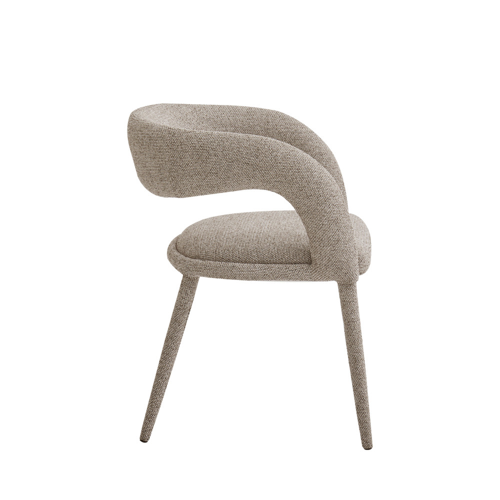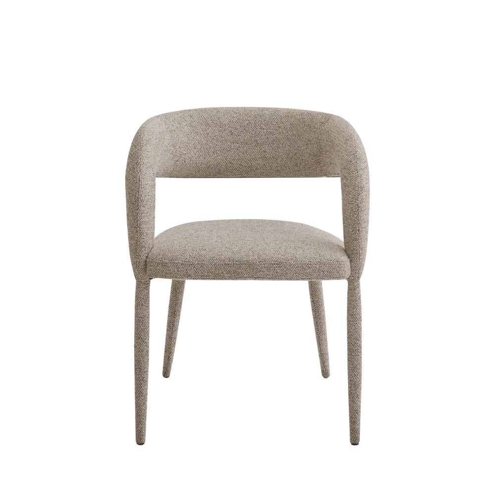 Monochromes, ces fauteuils de table sont entièrement recouverts de tissu : on a bien envie de se lover dedans, n'est-ce pas ? Ils se parent d'une jolie couleur marron chiné, une teinte cosy qui réchauffera l'atmosphère en un instant dans votre espace repas.
