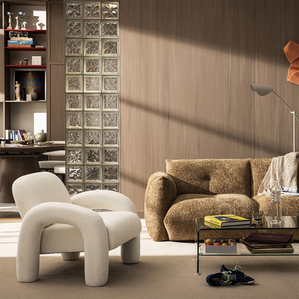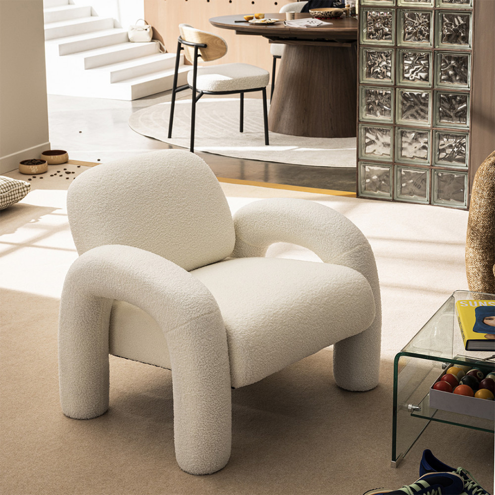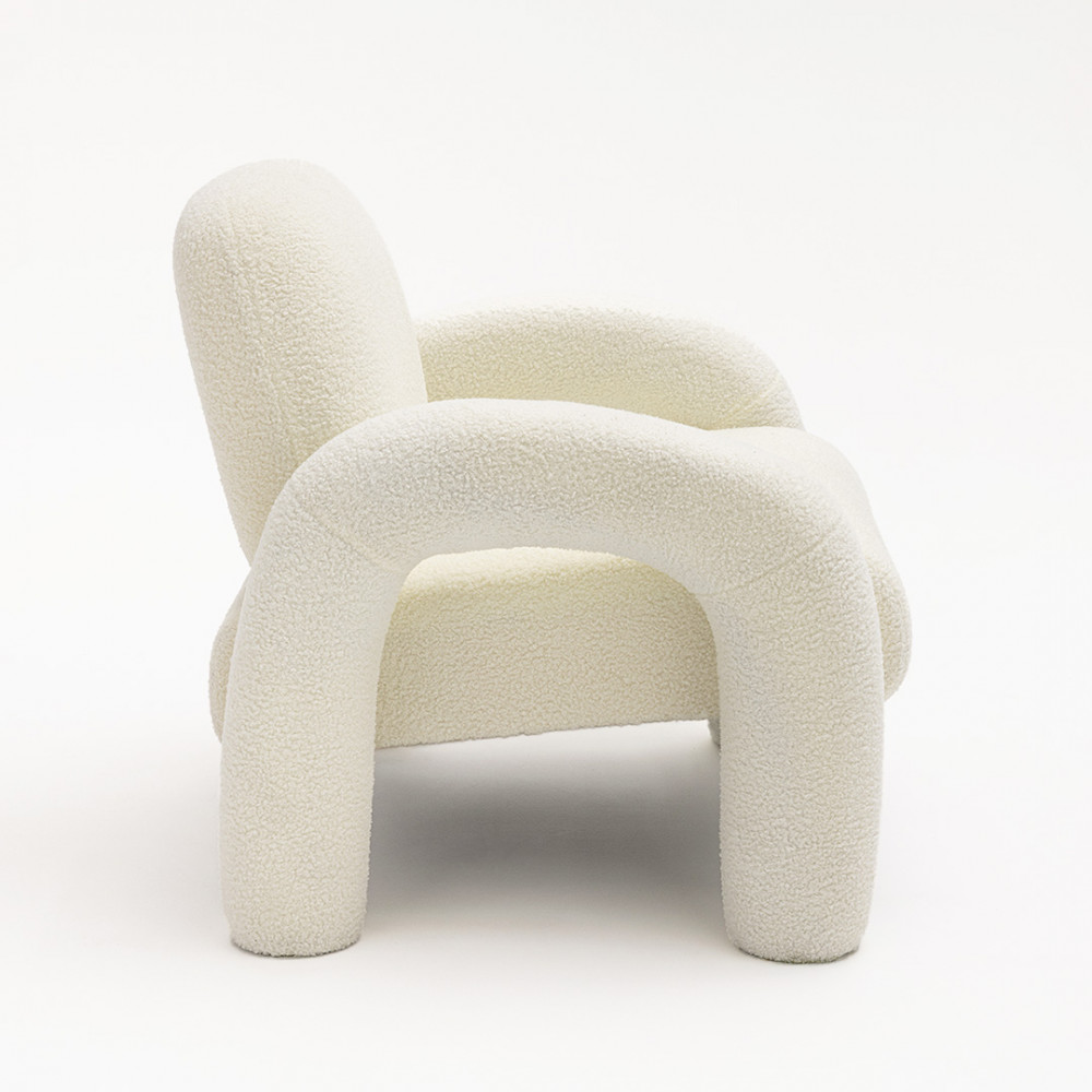 Alerte : pépite en vue ! Vous allez sûrement vous aussi craquer pour Mio, un fauteuil avec assise basse en tissu bouclette qui nous fait de l'oeil.