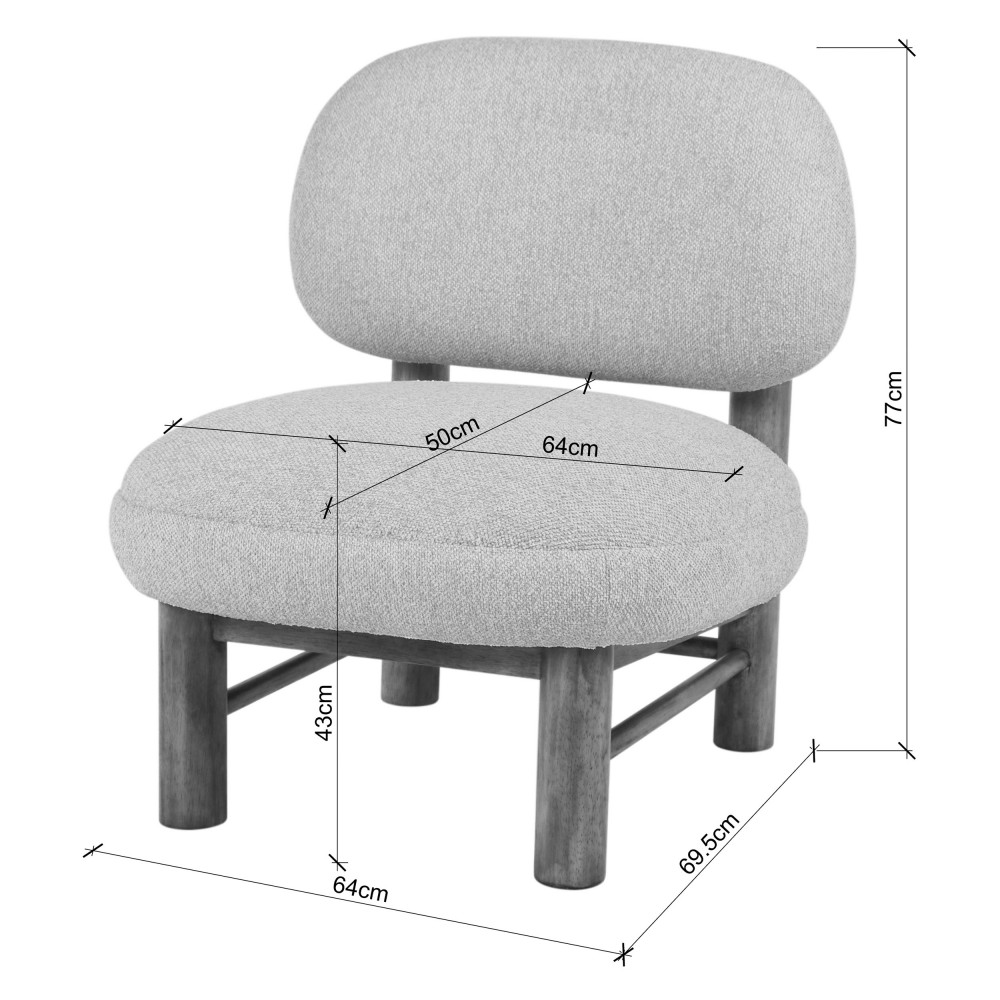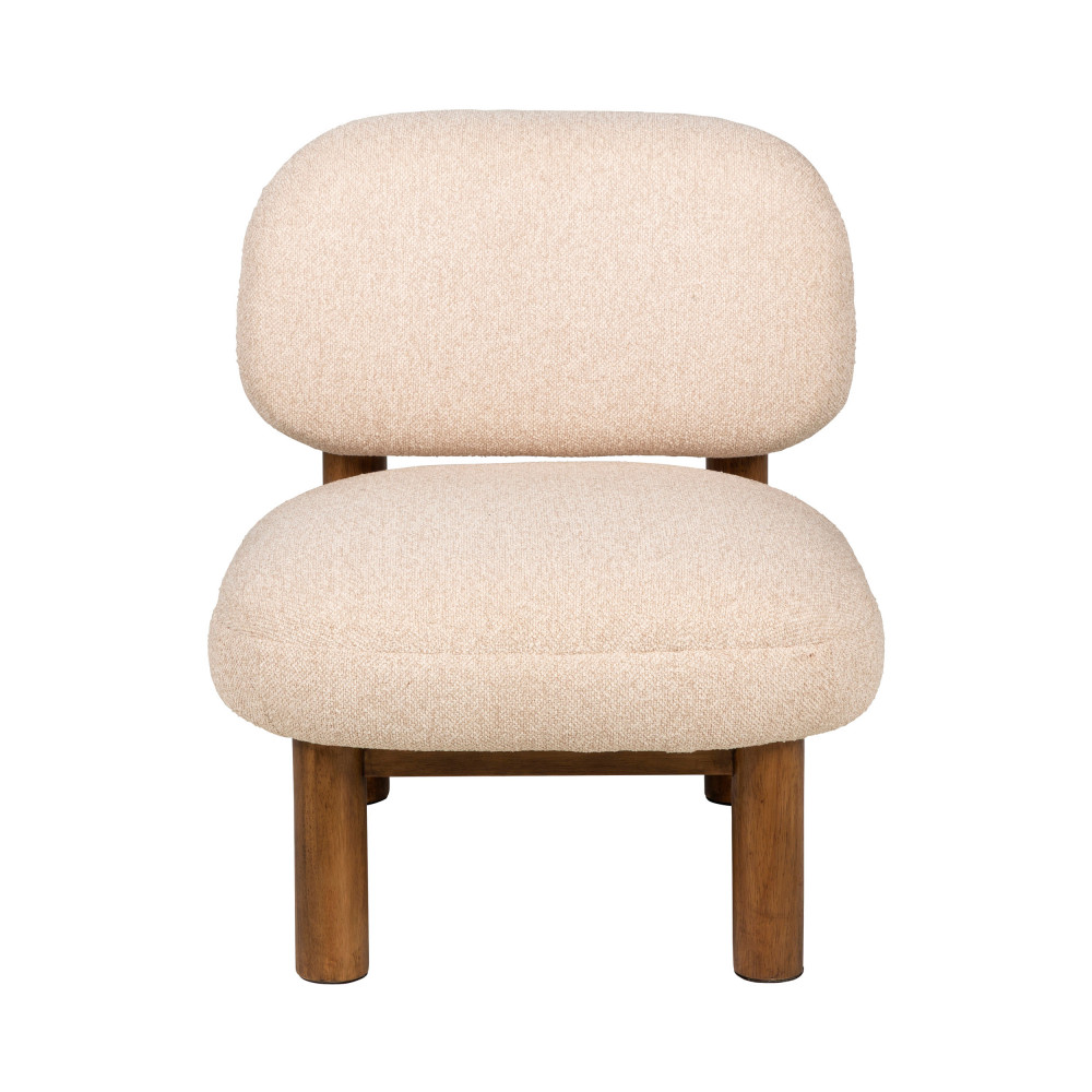 Nubo est pourvu d'une structure en bois, qui offre un joli contraste de matières avec le tissu bouclette. Bien stable, il se tient sur des pieds cylindriques qui font écho aux courbes du modèle.