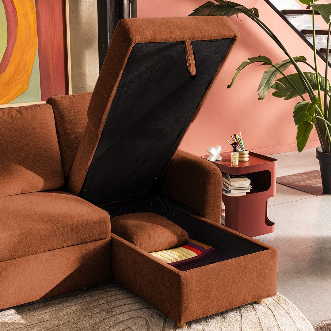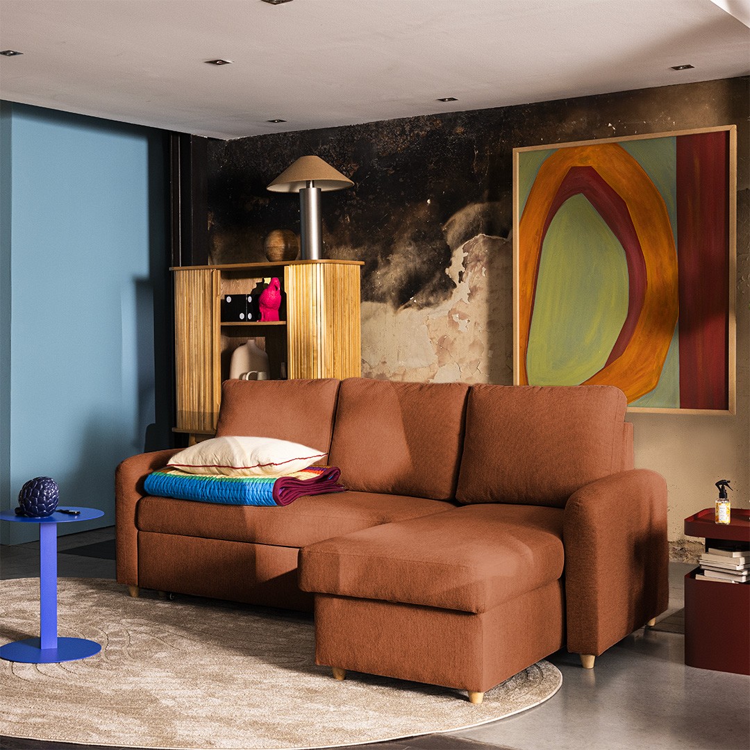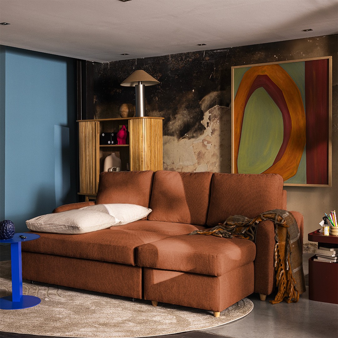Découvrez notre canapé qui fait tout le taf et qui cumule 3 bons points : il est convertible, possède un coffre de rangement intégré ET un angle réversible. Un sans faute.