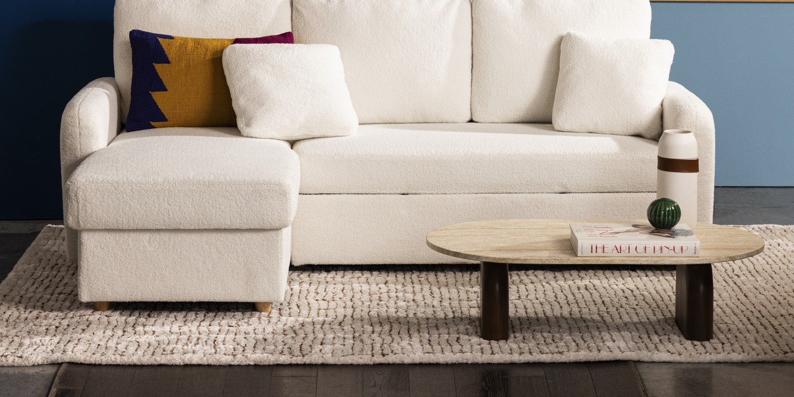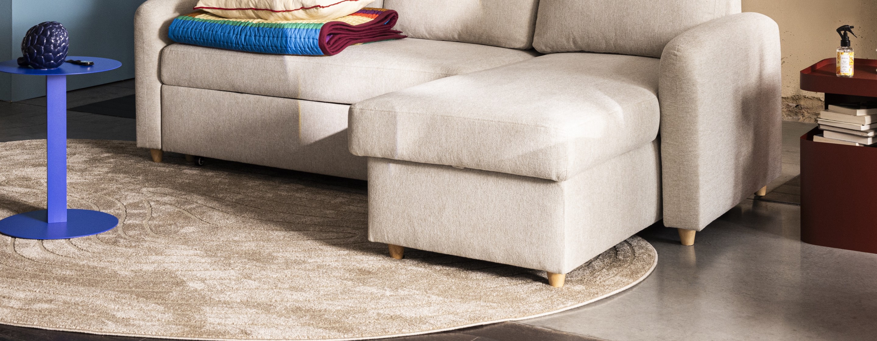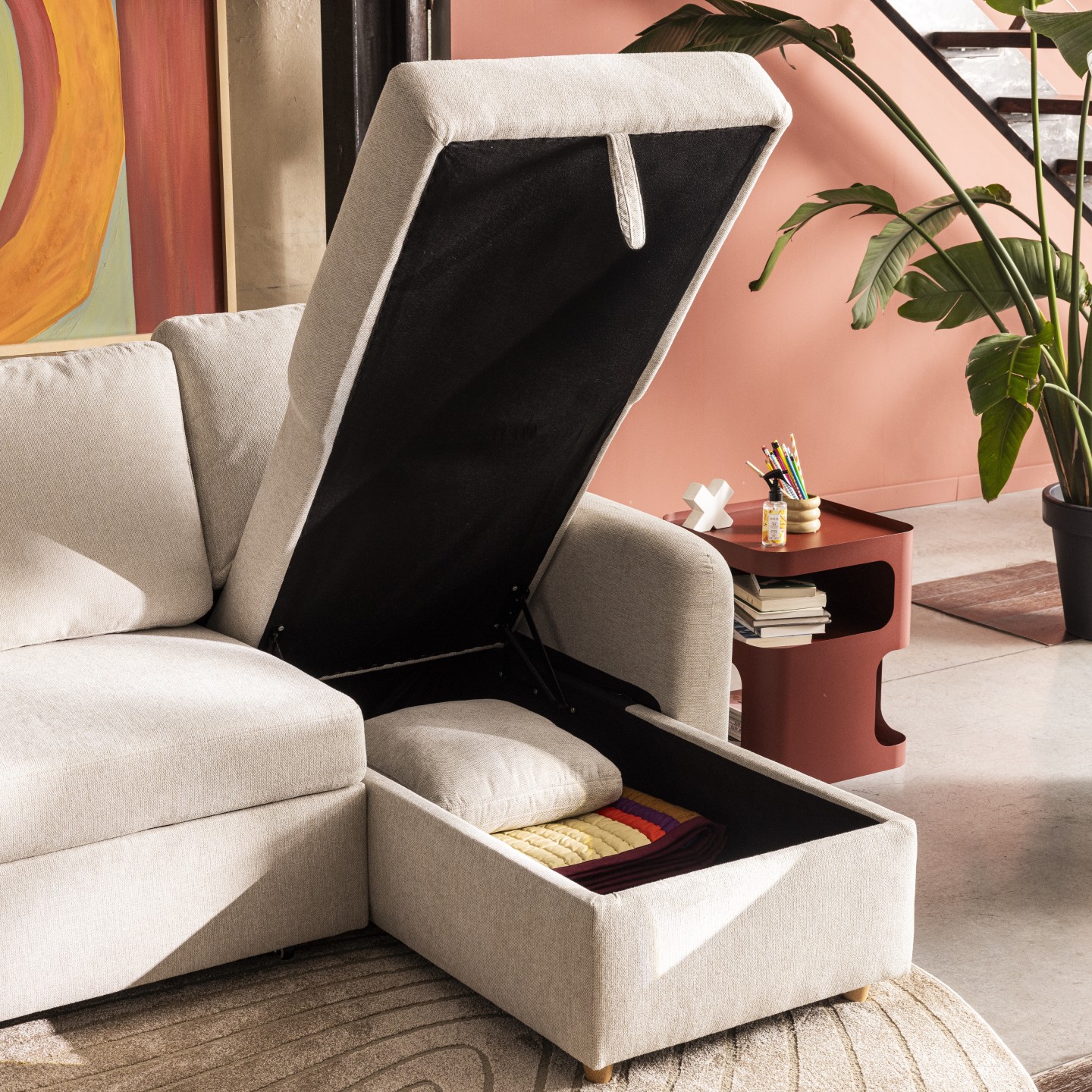 Découvrez notre canapé qui fait tout le taf et qui cumule 3 bons points : il est convertible, possède un coffre de rangement intégré ET un angle réversible. Un sans faute.