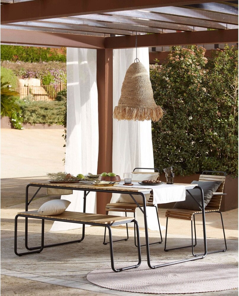 Le teck est particulièrement recommandé pour l’aménagement d’une terrasse en extérieur. En effet, ce bois tropical de qualité résiste aux intempéries. Il en va de même pour le bambou, la corde, l’acacia et le métal.