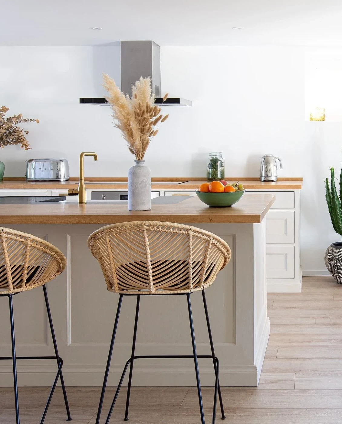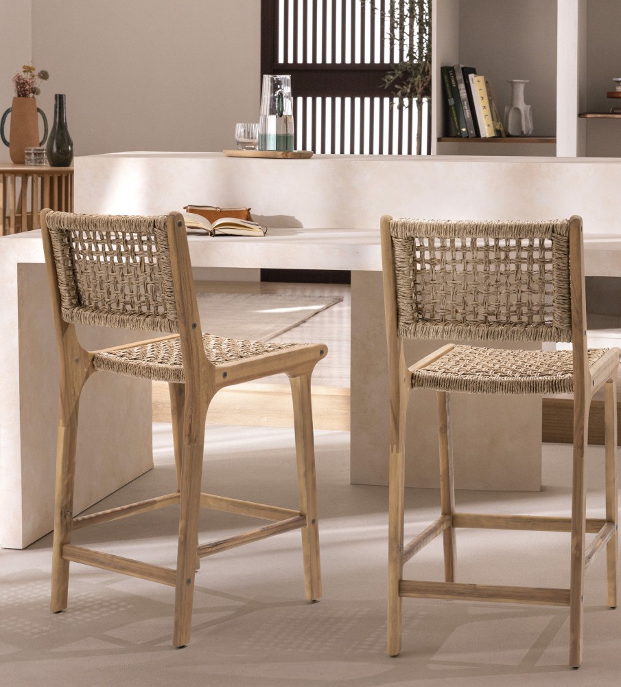 Les tabourets de bar en rotin s’accordent parfaitement aux intérieurs naturels, tandis que les modèles en simili cuir rappellent le charme des bistrots parisiens.