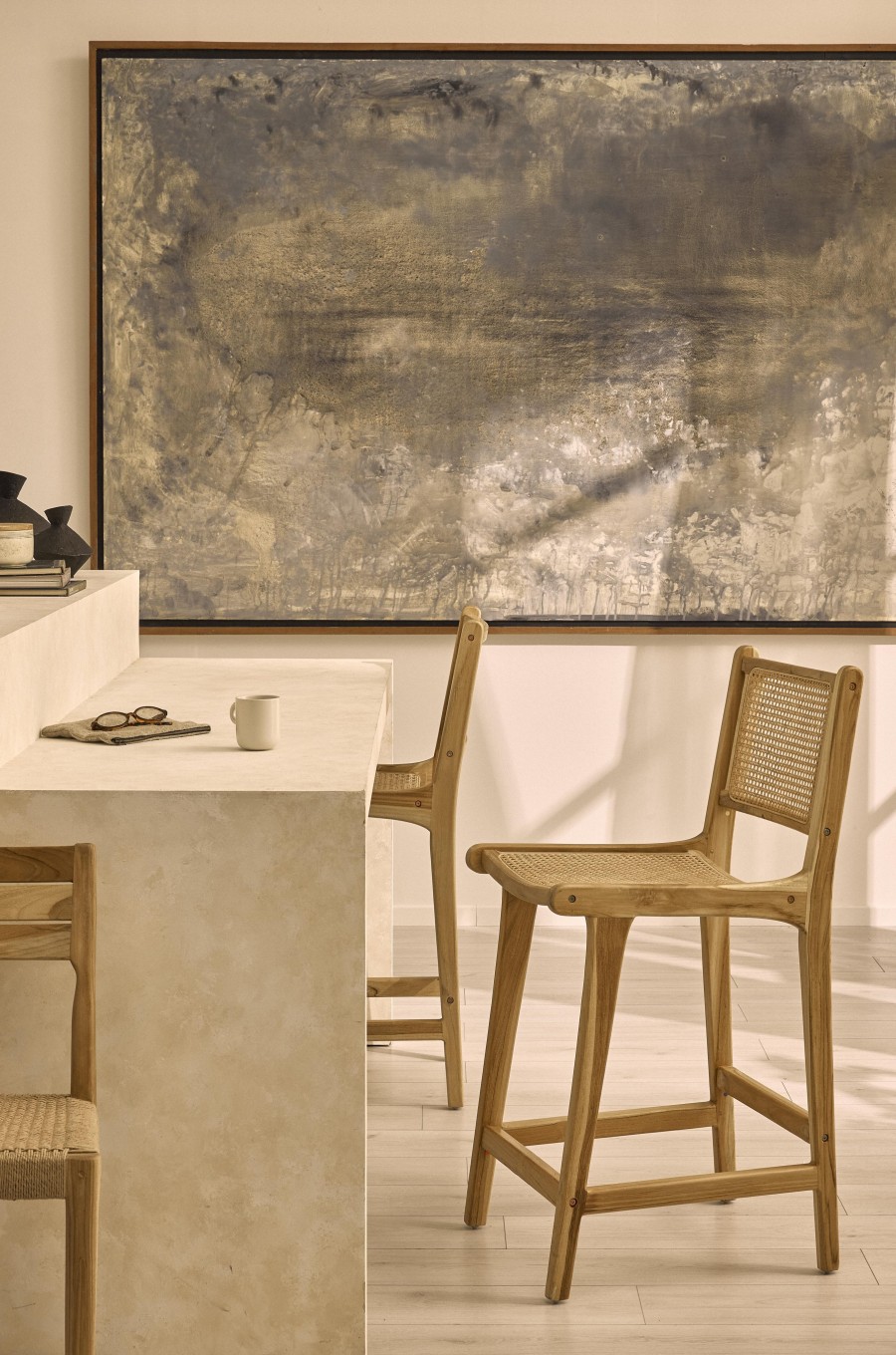 La chaise de bar, plus imposante, structure davantage la pièce et s’impose dans les intérieurs conviviaux où l’on aime s’attarder.