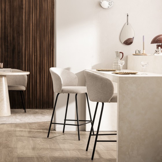 Le tabouret de bar s’associe à un comptoir d’environ 110 cm, avec une assise à 75 cm du sol, idéal pour boire un café, discuter en cuisinant ou partager un apéritif.