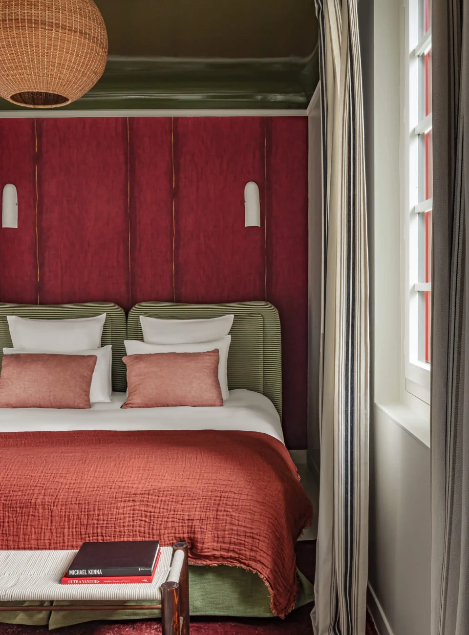 La lampe suspendue en corde éclaire la chambre. Avec le banc assorti en bout de lit, elle donne un côté naturel à la pièce. Tout comme le rotin, la corde permet d’apporter une touche bohème à son intérieur. D’ailleurs, cela vous donne envie de changer les luminaires de chez vous, afin de ramener un peu d’Hossegor à la maison…