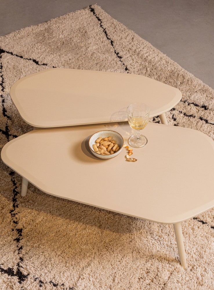Vous souhaitez acheter des tables assorties, sans forcément que ce soit des gigognes ? Dans ce cas, vous pouvez également opter pour un format qui ne s’empile pas en hauteur, mais qui s’assemble quand même avec d’autres tables basses. Souvent, ces tables prennent la forme de plusieurs blocs assortis et de différentes hauteurs (et si vous voulez notre avis, c’est vraiment trop beau…).