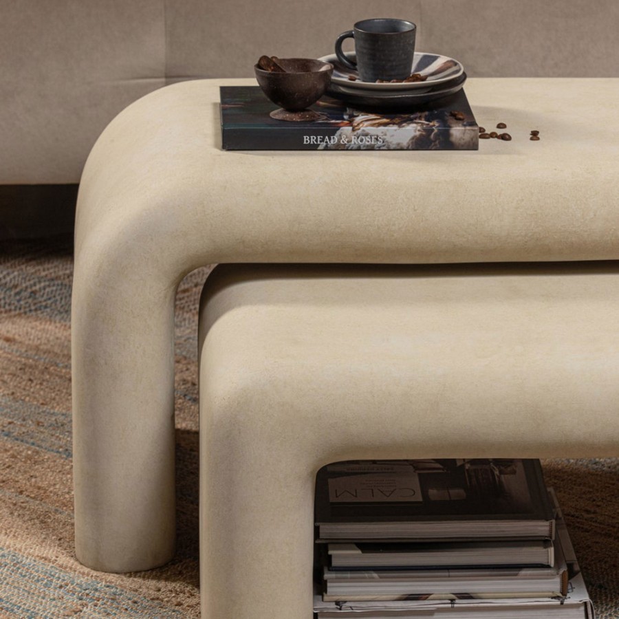 Enfin, si c’est plutôt le style bohème qui vous parle, pourquoi ne pas vous laisser tenter par de belles tables basses gigognes en matières brutes ? Nous pensons pour vous à un effet béton ou bien bois, avec des formes arrondies ou irrégulières. Ah, et, encore un petit conseil de la team Drawer : à côté d’un canapé en lin ou en tissu bouclette, l’effet naturel sera d’autant plus amplifié…
