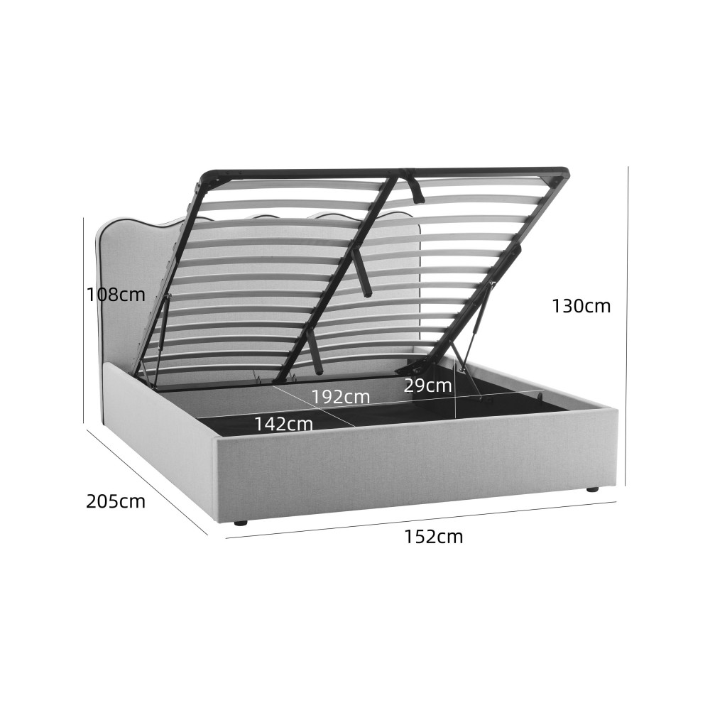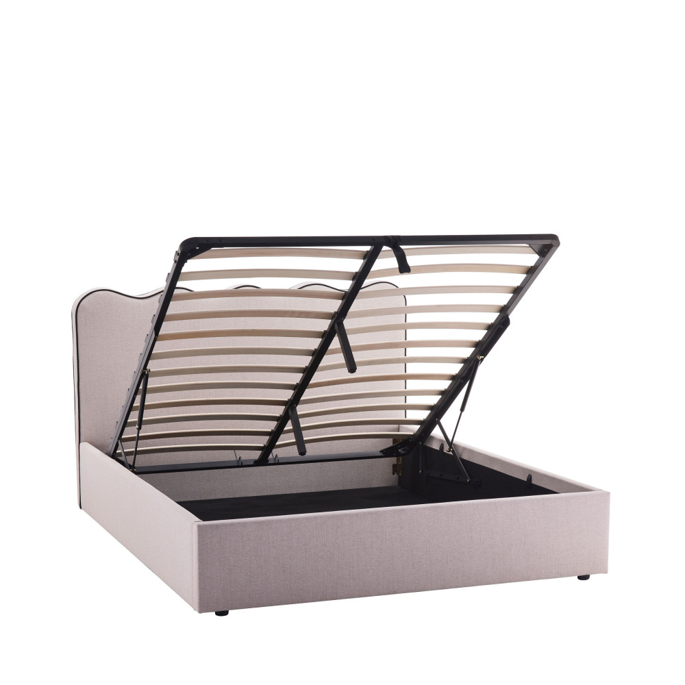 NAGOYA Lit coffre en tissu avec tête de lit ondulée 140x190cm