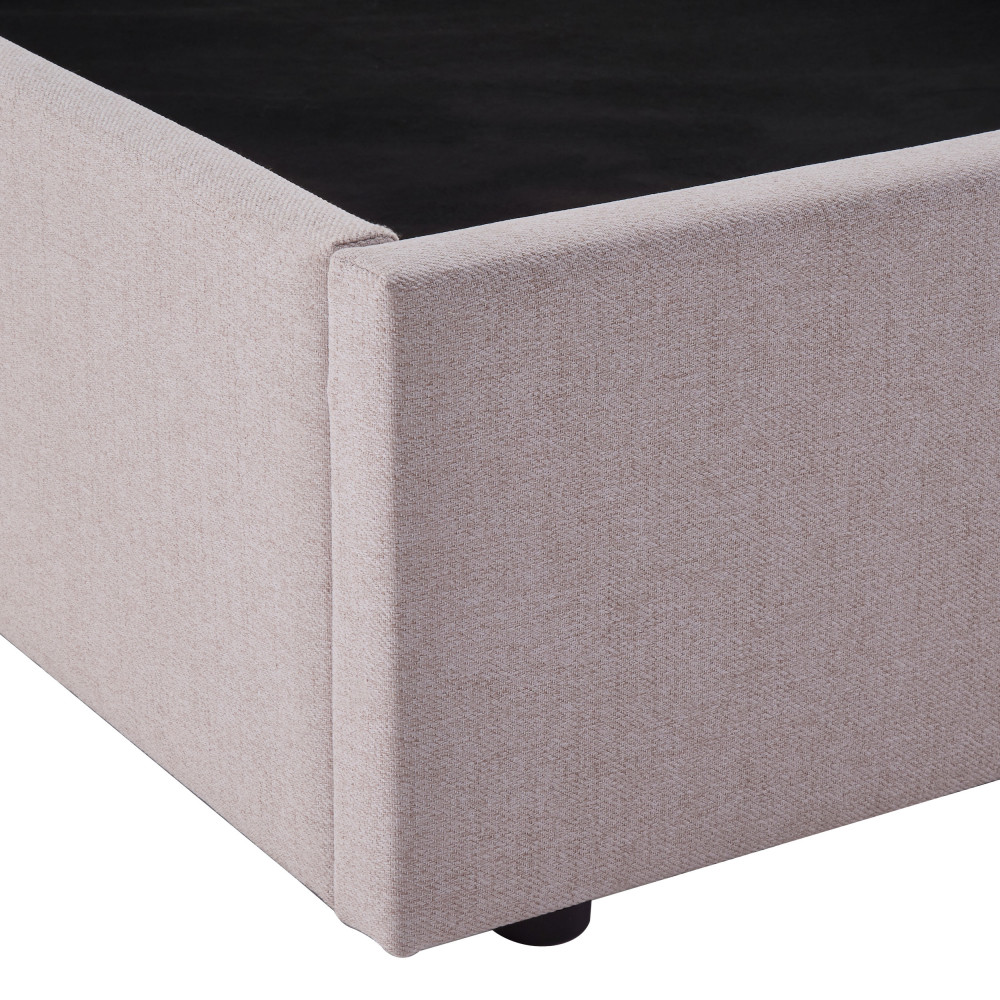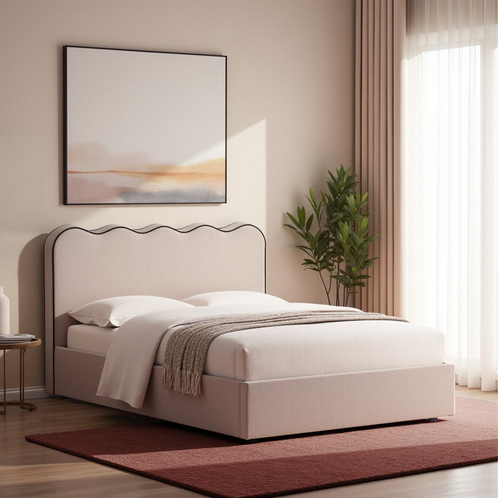Côté look, il joue la carte du chic contemporain avec sa tête de lit ondulée, douce et graphique à la fois. Son tissu moelleux invite à s’y blottir pour lire, rêver ou simplement procrastiner avec élégance. Son design sobre s’accorde avec toutes les ambiances, bohème, minimaliste, moderne, et ses pieds en plastique discrets assurent une stabilité sans faille.