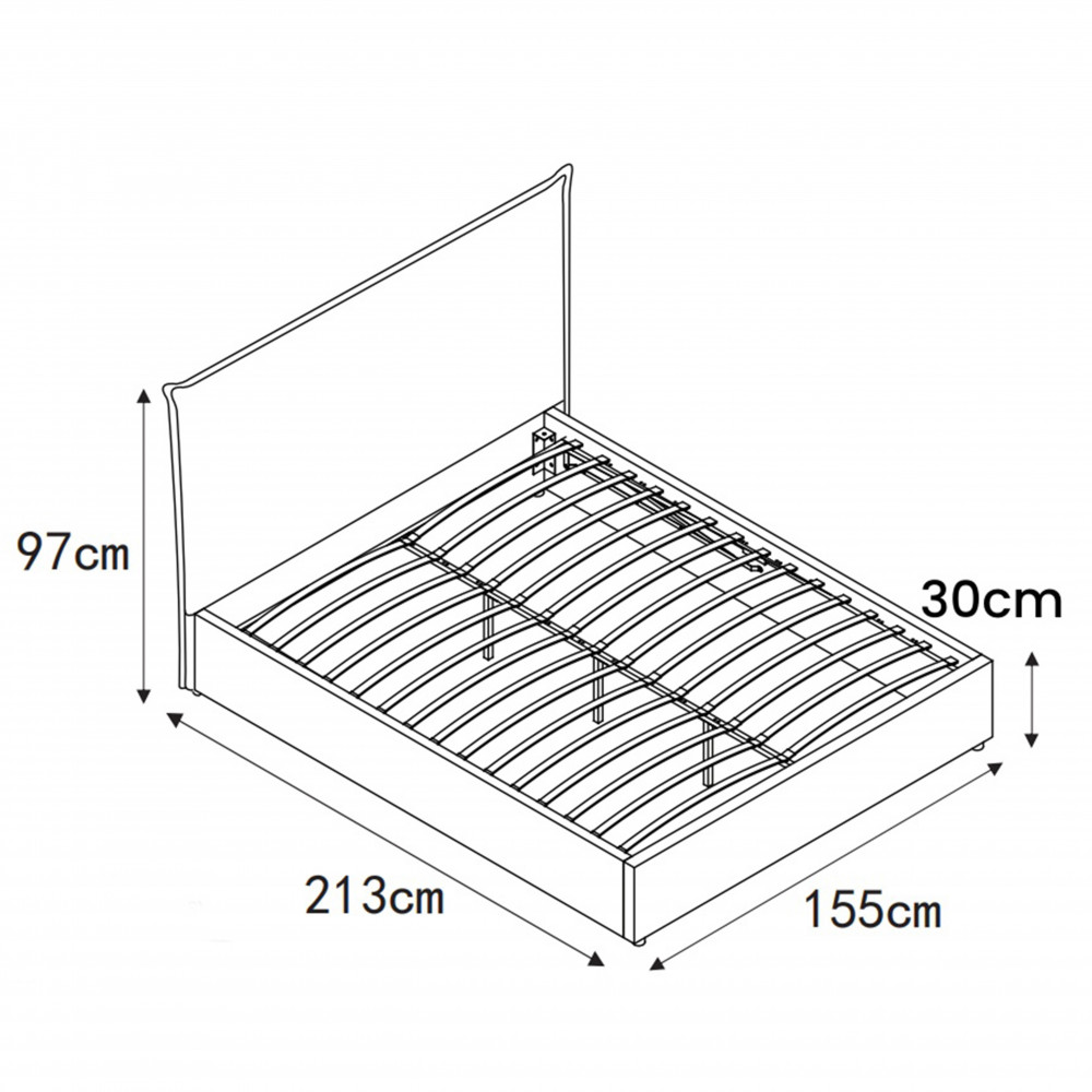 Avec ses 155 cm de largeur, ses 203 cm de profondeur et ses 97 cm de hauteur, il est parfaitement dimensionné pour une personne ou un couple, sans trop empiéter sur la surface de la chambre. Son sommier inclus de 140x190 cm assure un confort immédiat, et ses lignes douces donnent envie de se glisser sous la couette dès le retour à la maison.