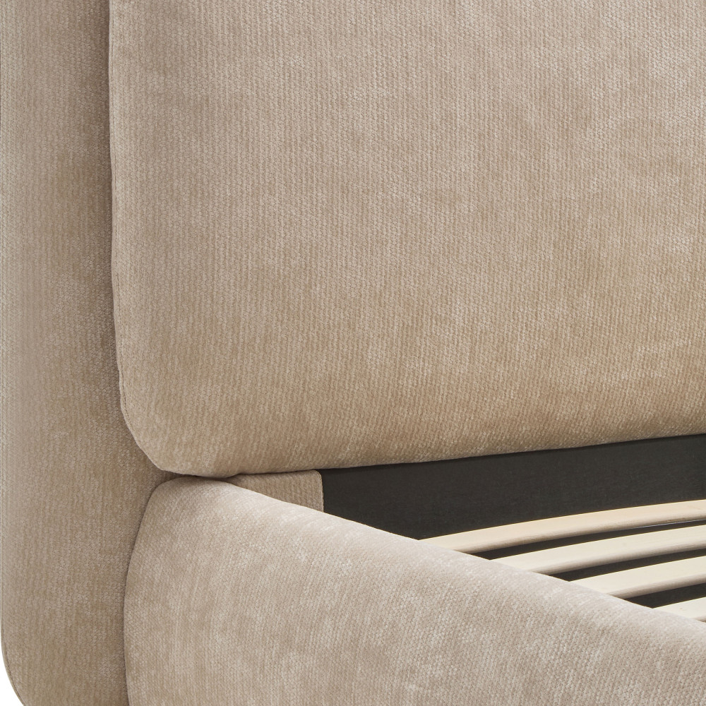 Avec ses 160x200 cm, vous aurez assez de place pour vous y blottir à deux ou pour adopter une position yoga improbable au milieu de la nuit, sans risquer de tomber à la renverse. Sa tête de lit arrondie ? Tel un oreiller géant qui vous serre dans ses bras à chaque réveil, comme pour prolonger la douceur de la nuit.