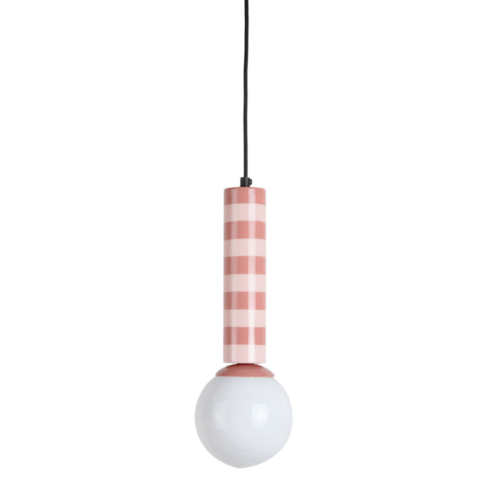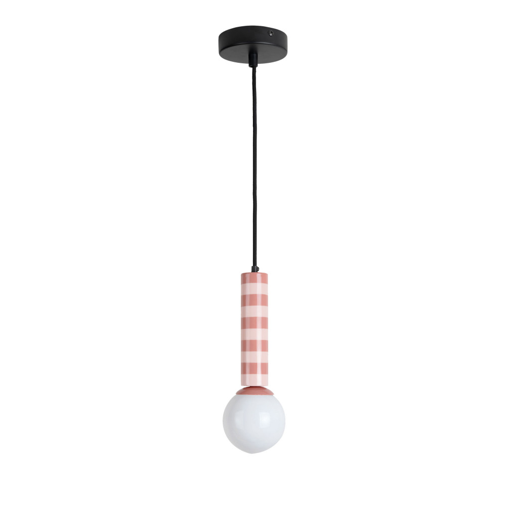 La suspension Rayado séduit par son motif vichy original et sa silhouette élancée. Son design tout en verticalité attire le regard tout en laissant pleinement s’exprimer la lumière de l’ampoule globe. Une pièce aussi décorative que fonctionnelle, idéale pour injecter une touche graphique à votre intérieur.