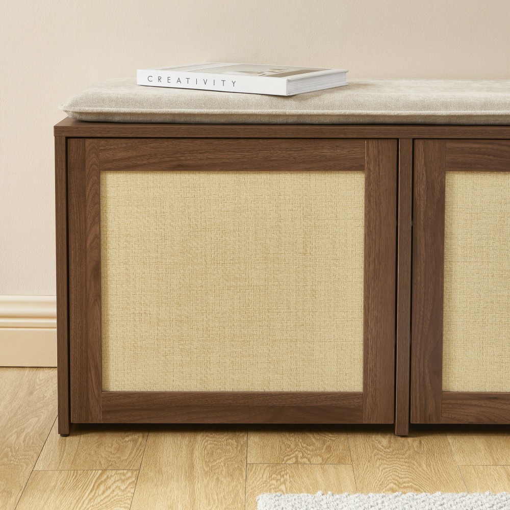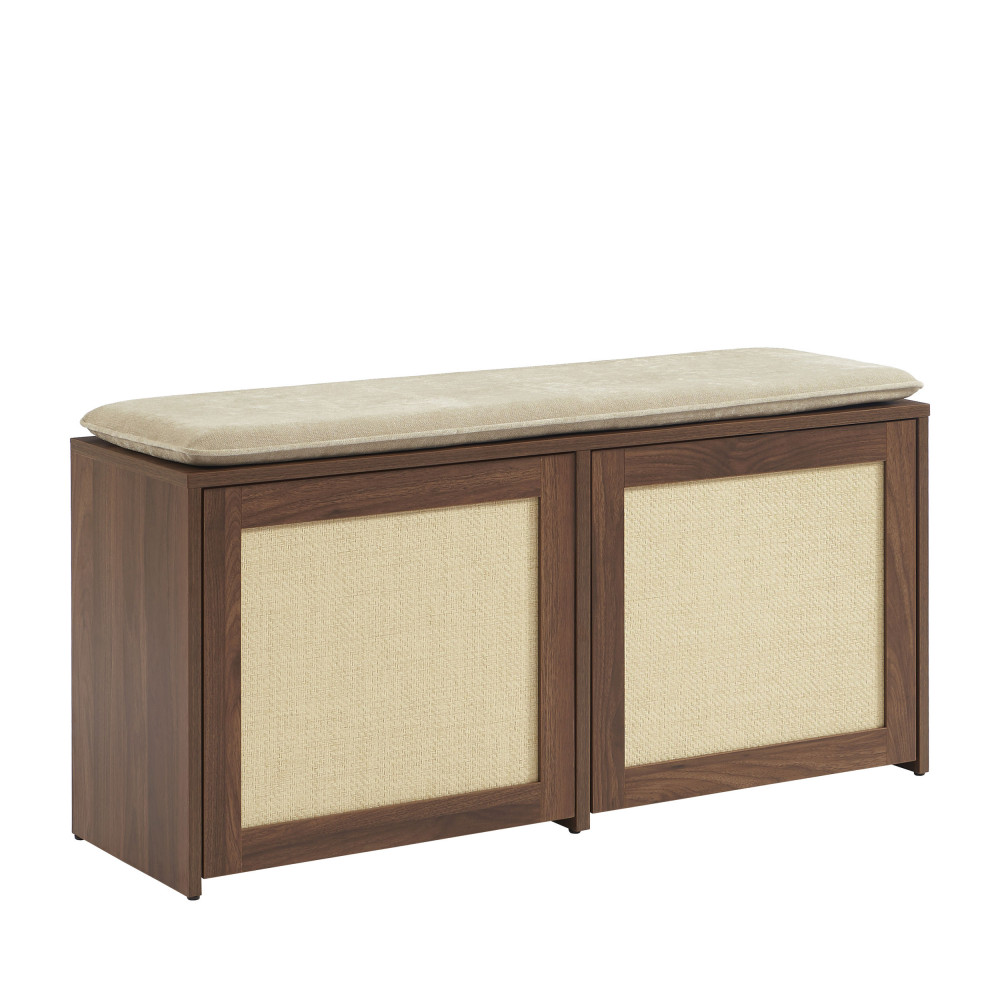 ESTELA Banc d'entrée avec rangement à chaussures en bois et cannage L100cm