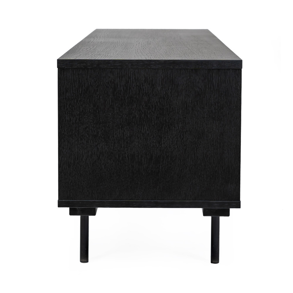 Coup de cœur généralisé au sein de la Drawerteam pour ce meuble TV design en bois et métal Stripe ! Cette petite pépite aux lignes épurées signée Woodman se caractérise par un corps constitué de panneaux de particules de bois plaqués chêne, teints en noir et recouverts de vernis mat.