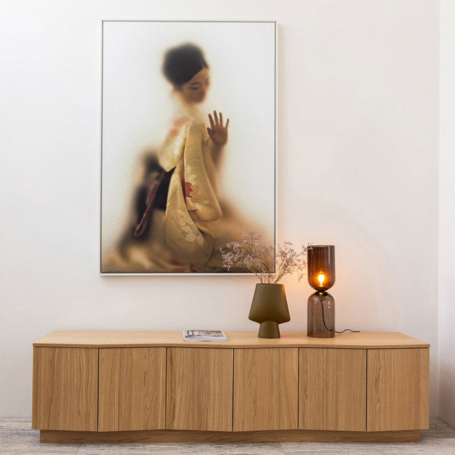 Ce meuble fabriqué aux Pays-Bas mesure 52 cm en hauteur, 45 cm en profondeur et fait 200 cm de large : sa taille XXL est parfaite pour aménager et ranger un grand salon, et habiller et optimiser au mieux les espaces. En plus de l'espace intérieur, vous aurez largement assez de place sur le dessus, de part et d'autre de l'écran de télé, pour exposer vases, bibelots et autres souvenirs et objets de déco.