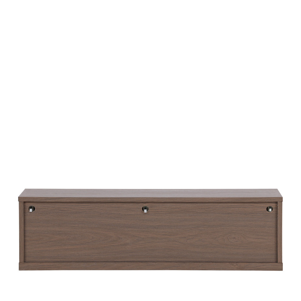 Confectionné tout en bois (MDF et papier), ce modèle de 28 x 100 x 35 cm présente une forme rectangulaire tout en simplicité. Le fait qu'il soit suspendu est super pour ne pas empiéter sur l'espace au sol et faire respirer son aménagement intérieur (et pour faciliter le ménage !).