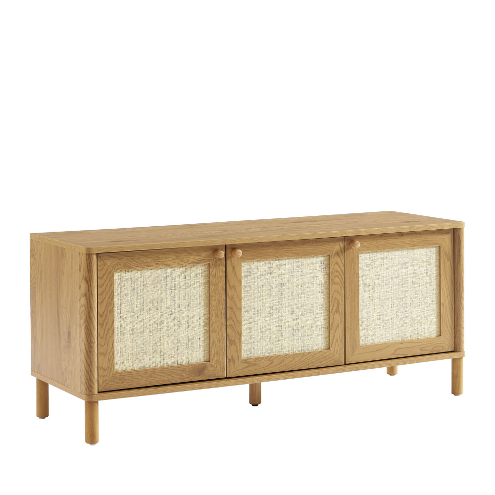 IRIS Meuble TV 3 portes en bois et cannage L120cm