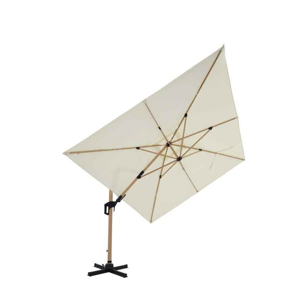 VEYA Parasol rectangulaire déporté en aluminium et effet bois 3x4m