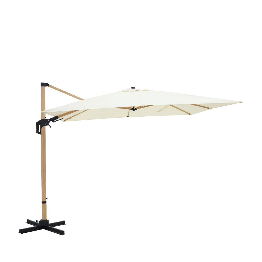 VEYA Parasol carré déporté en aluminium et effet bois 3x3m