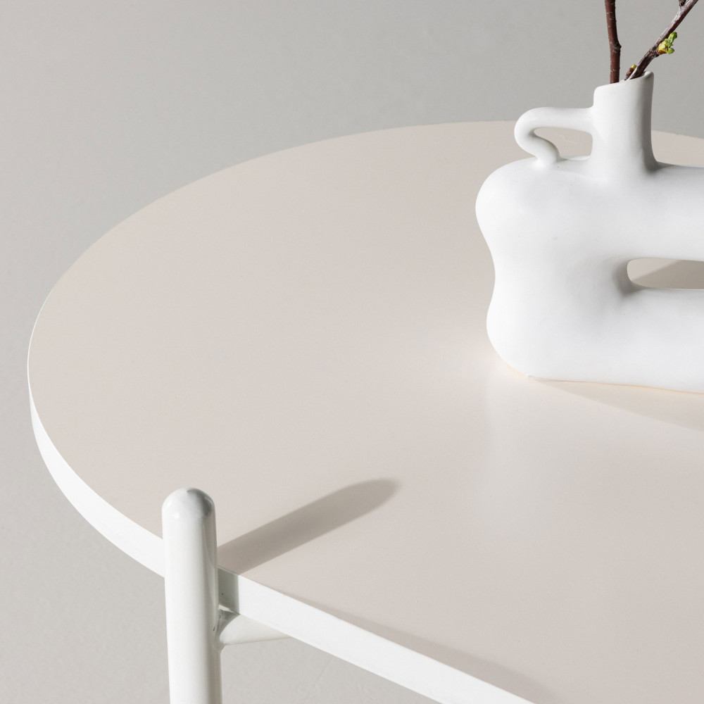 Cette table saura se faire discrète dans votre pièce de vie. Bi-matière, ce modèle se dote d'un plateau de forme ovale en MDF d'épaisseur moyenne soutenu par des pieds en métal ton-sur-ton. Simple tout en étant travaillé, ce piètement, composé de 4 pieds cylindriques qui remontent au-dessus du plateau et sont liés en X en dessous apporte du caractère à l'ensemble. En plus, le contraste de matières est toujours intéressant. Avec ce genre de design indémodable, aucun risque de faire une faute de goût !