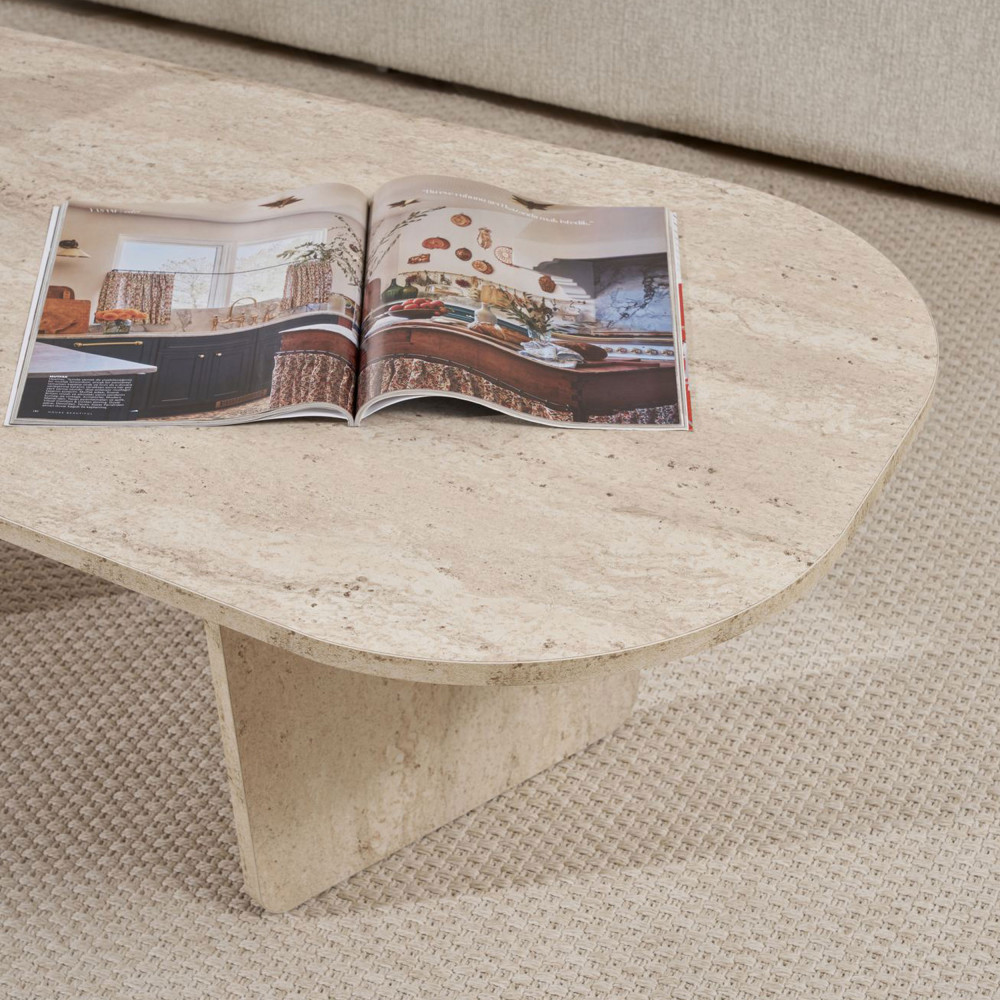 Vous n'avez pas encore succombé à la tendance travertin ? Ce sera peut-être chose faite avec la table basse ovale effet travertin Soma de Drawer ! Un modèle aux lignes simples réalisé dans un matériau tendance ? On dit oui !