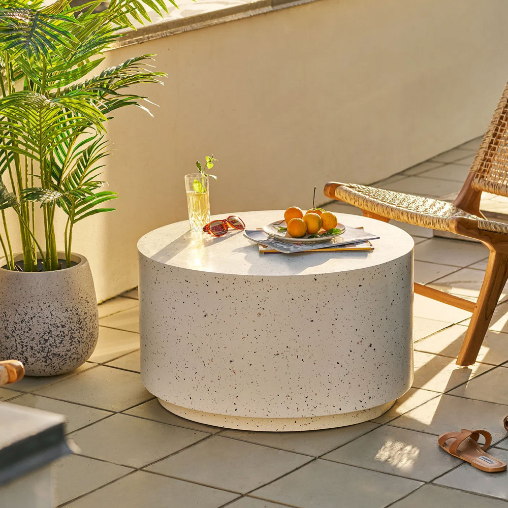 Conçu en fibre d'argile en effet terrazzo, ce plateau solide et durable mesure Ø70 x H40 cm et supporte un usage quotidien sans effort. Léger et maniable avec un poids d’environ 7 kg, il se déplace facilement selon vos envies, pour créer différentes ambiances selon les moments de la journée. Grâce à sa résistance adaptée à un usage intérieur et extérieur couvert, il devient un allié polyvalent, pratique et esthétique, que ce soit à l’intérieur ou sous un auvent.