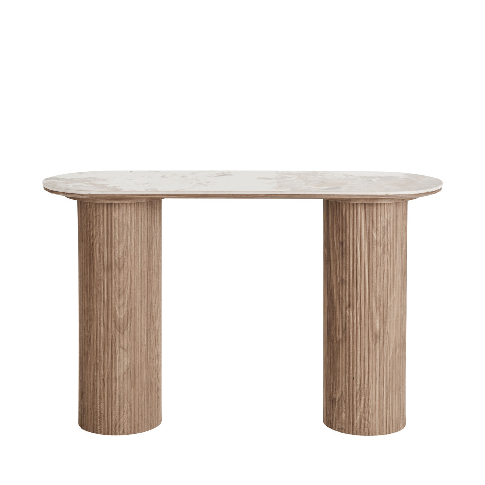 ATHENS Console aux bords arrondis effet marbre et bois L120cm