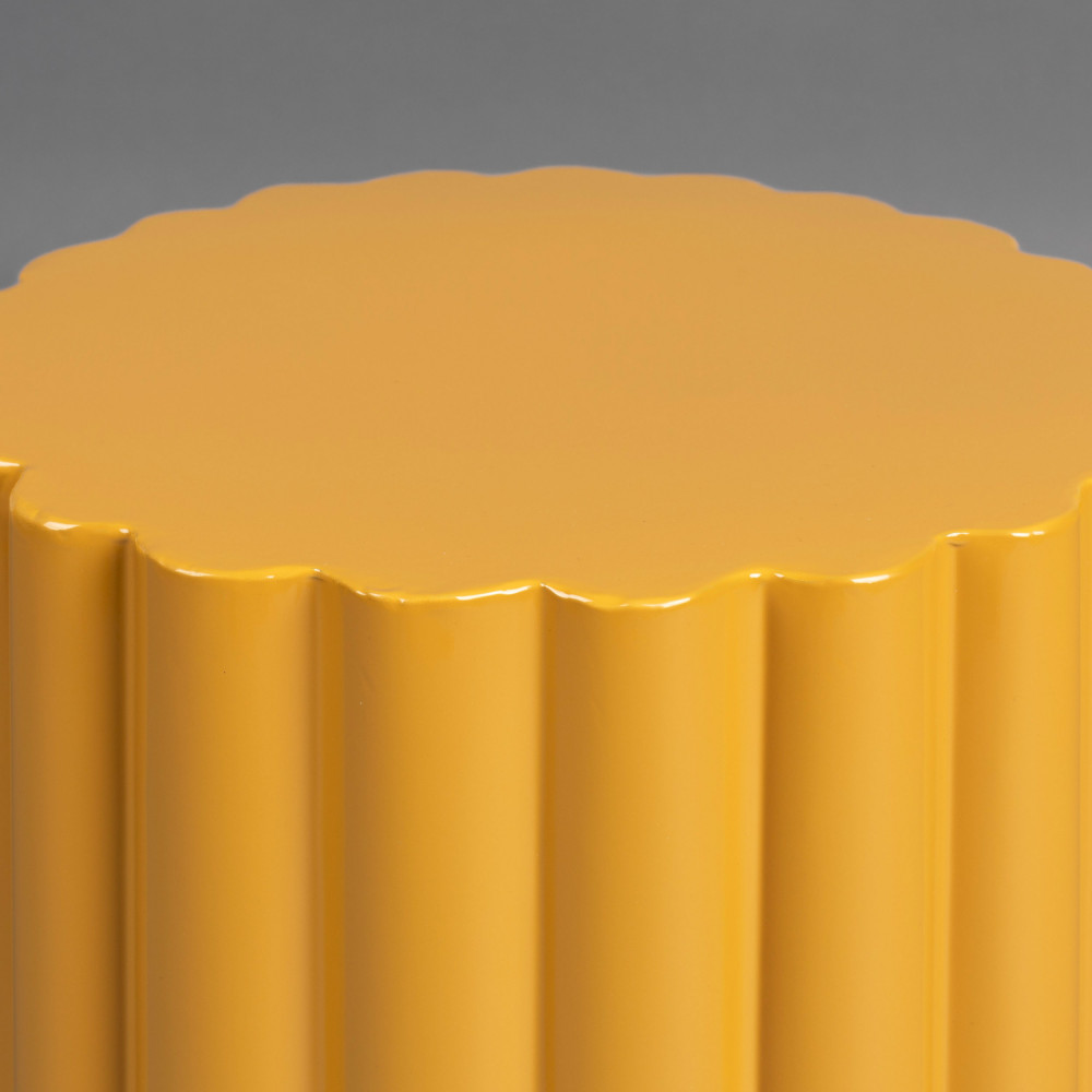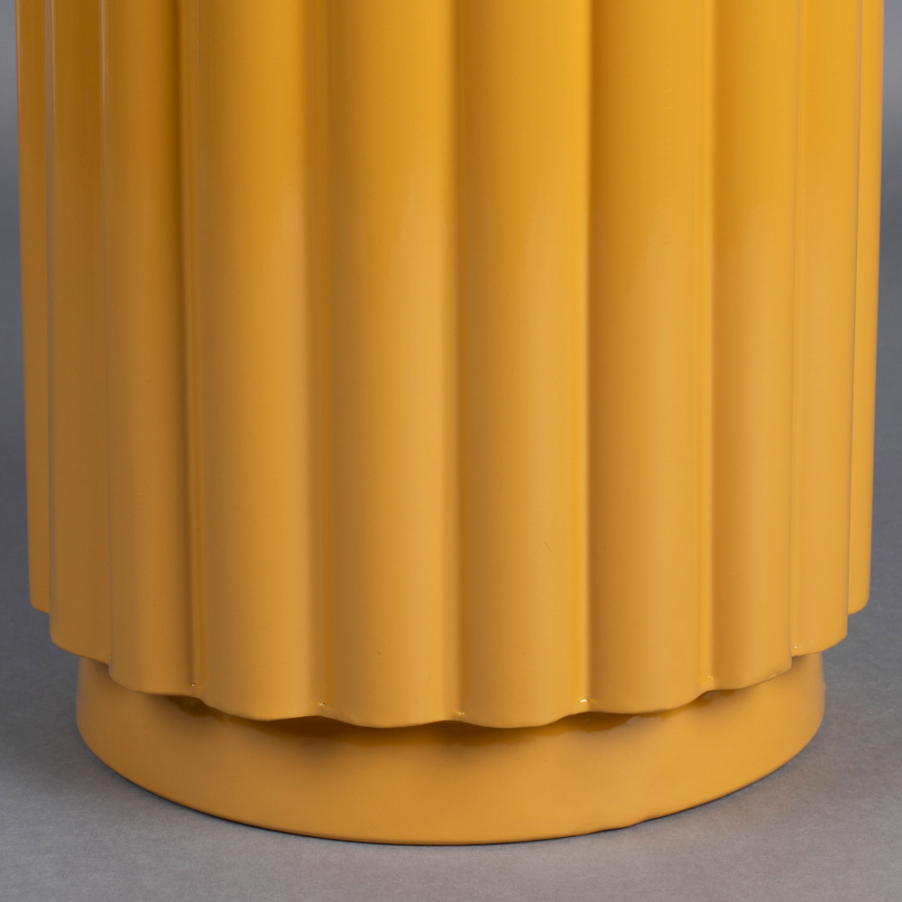 Conçu tout en métal avec une jolie finition laquée, ce modèle ne laisse effectivement pas indifférent. On aime sa forme cylindrique striée sur tout son pourtour, comme une colonne antique, avec une base bien stable légèrement en retrait. Vous aimez ce design ? Nous, ça nous plaît beaucoup !