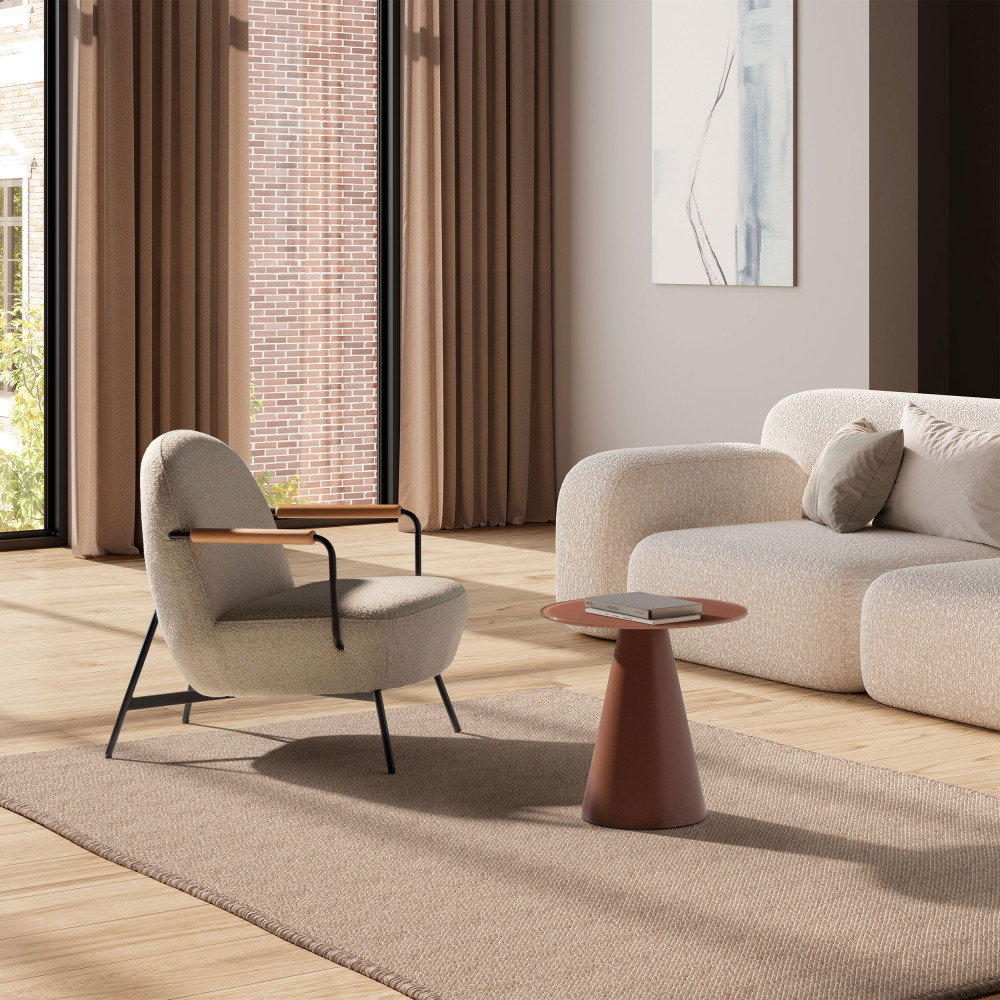 Cette table d'appoint de style contemporain mesure 46 cm en hauteur et fait 45 cm de diamètre, un format compact. Elle pourra prendre place dans votre pièce de vie, aux côtés de votre canapé ou dans un coin un peu vide de la pièce, ou bien dans le bureau, dans la chambre ou encore dans l'entrée : bref, elle pourra se rendre utile partout ! Elle pourra accueillir une pile de magazines ou une maxi bougie, un beau vase ou une statuette pour la déco.