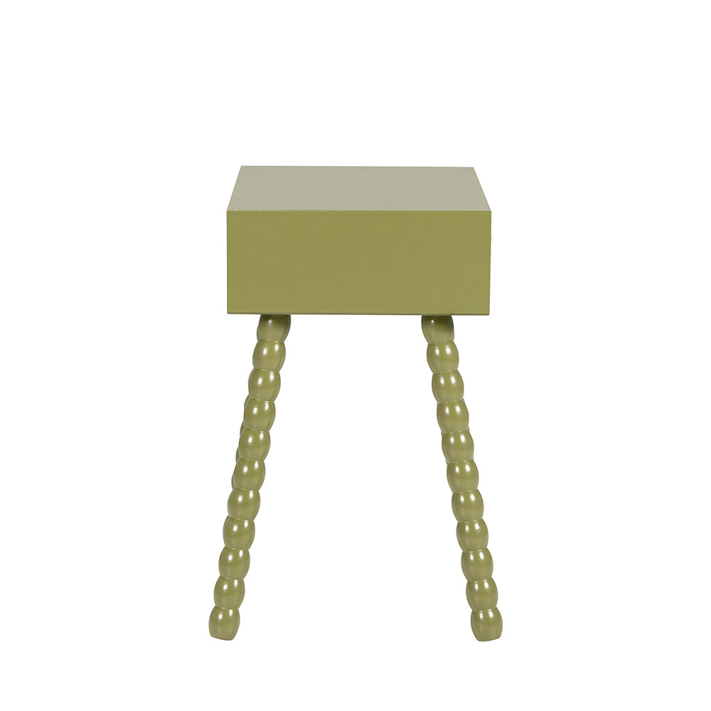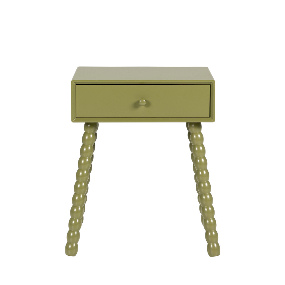 La team Drawer vous propose ici une jolie table de nuit de 50 x 40 x 30 cm confectionnée tout en bois (MDF pour le haut et bois massif de pin pour le piètement), entièrement peinte.