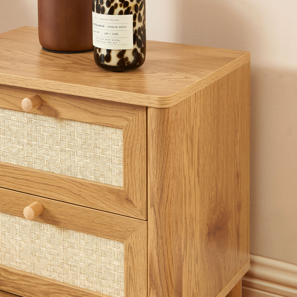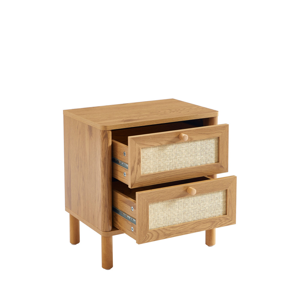 IRIS Table de chevet 2 tiroirs en bois et cannage