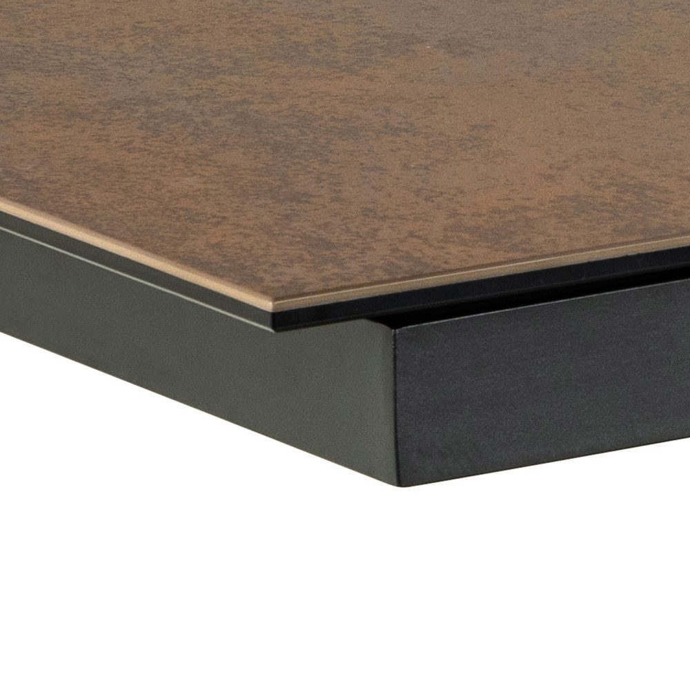 Le mariage de la céramique et du métal donne à cette table un aspect à la fois moderne et intemporel, capable de s'intégrer dans tout type d'intérieur. Sa forme rectangulaire offre une esthétique épurée et une grande stabilité, tout en optimisant l'espace disponible pour le confort de tous les utilisateurs.