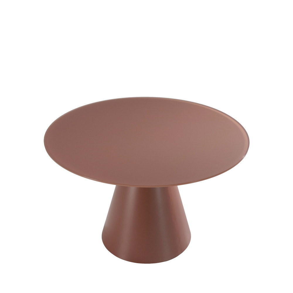 Drawer vous propose ici une élégante table repas monochrome de style contemporain, au design très tendance. Elle se dote d'un plateau rond très fin (0,7 cm d'épaisseur) en verre trempé (verre teinté à la finition laquée mate) : ça tombe bien, le verre trempé fait un retour en force dans nos intérieurs ! Elle est également pourvue d'un maxi pied central à la forme conique en métal.