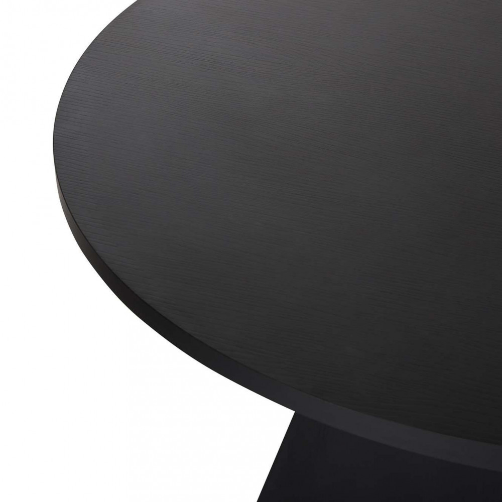 Conçue tout en bois (mélaminé), pour une allure authentique, cette table se dote d'un plateau rond d'épaisseur moyenne. Elle est également pourvue d'un maxi pied central composé de 2 grands panneaux croisés à la forme triangulaire. Ce piètement affirmé vient jouer les contrastes avec la forme du plateau et confère du caractère à la pièce.