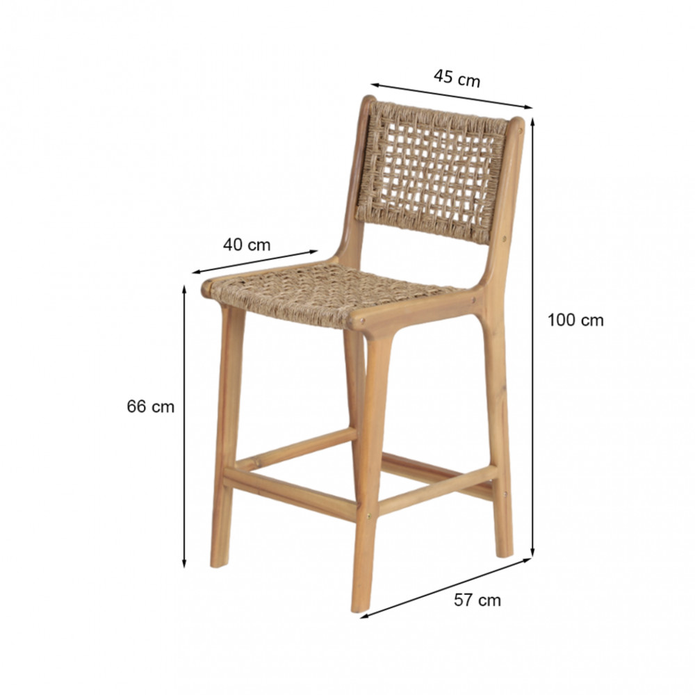 LEXIA Lot de 2 tabourets de bar intérieur/extérieur en bois d'acacia et résine tressée H66cm