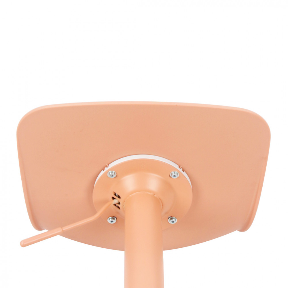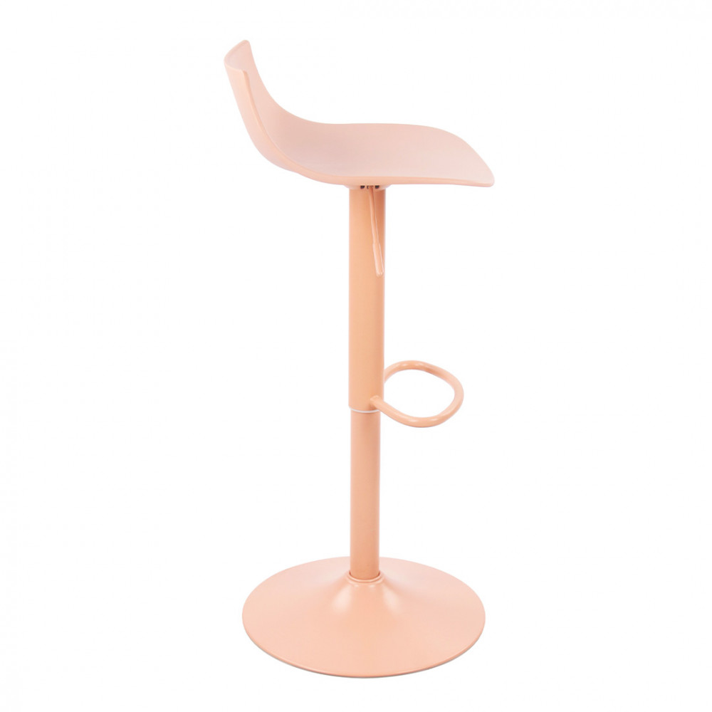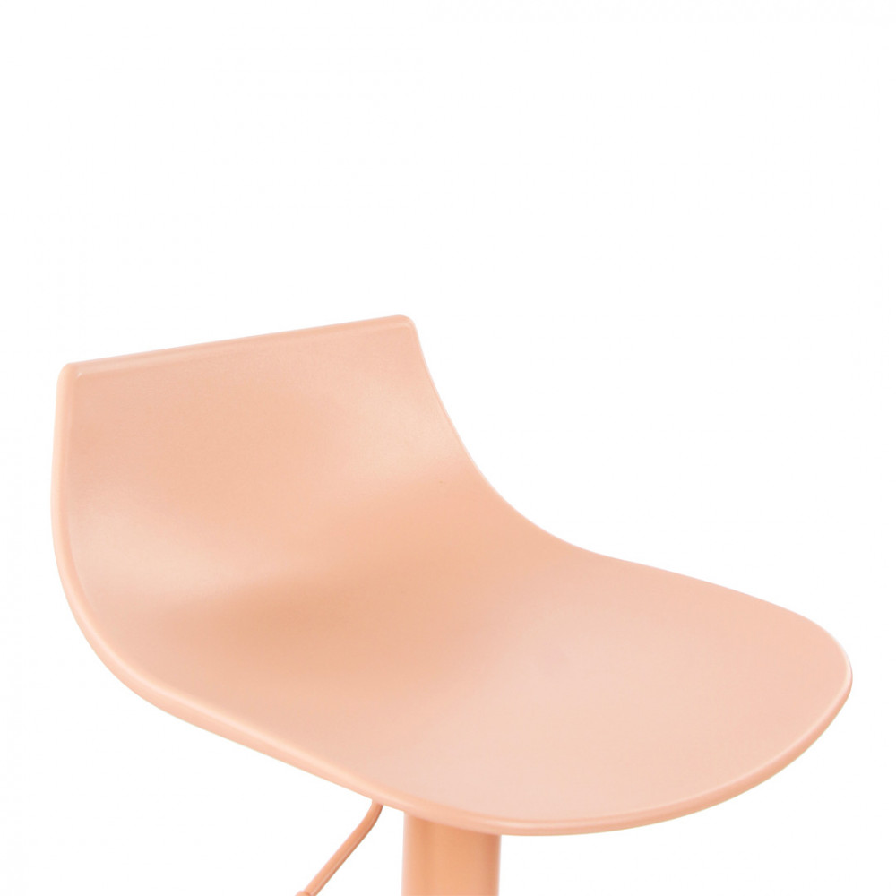Nous vous présentons ici des chaises de bar monochromes composées d'une assise et d'un petit dossier courbé faits d'un seul tenant en plastique (polypropylène) puis d'un pied central cylindrique en métal avec barreau repose-pieds et enfin une base ronde légèrement conique.