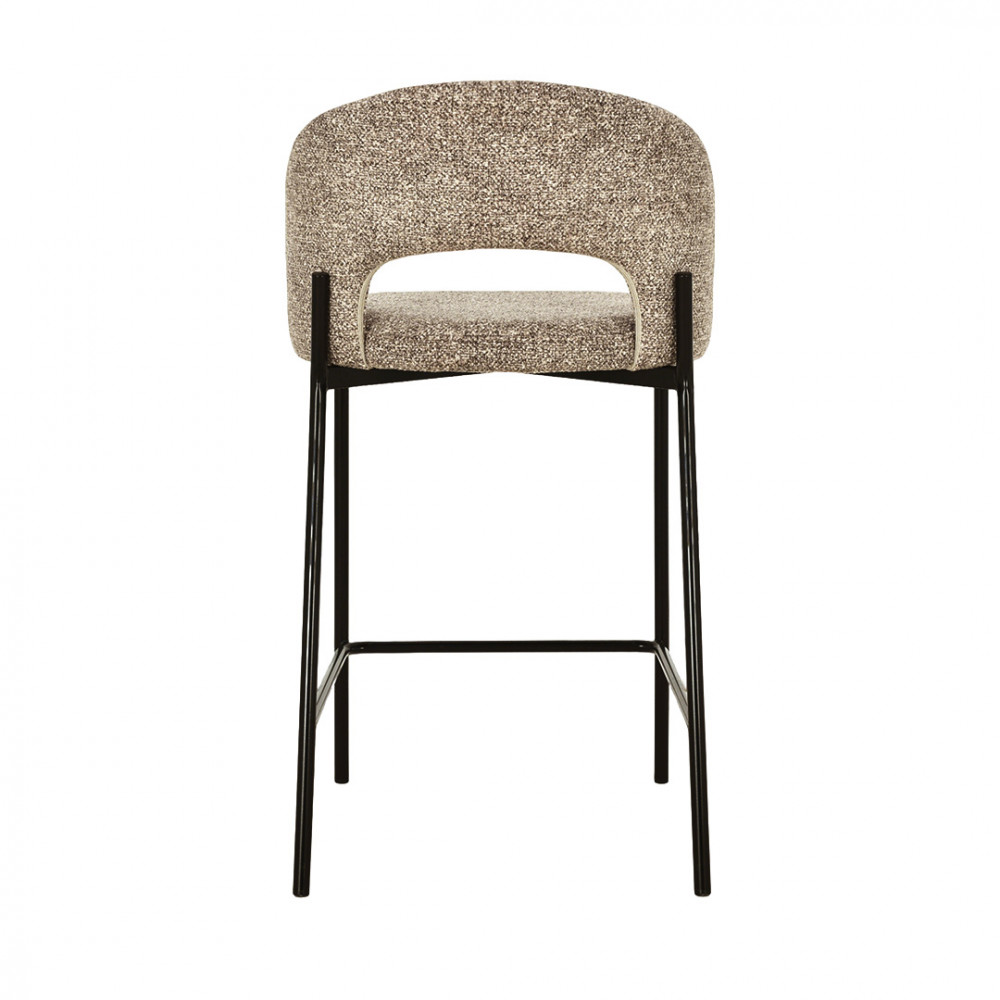 Ces chaises hautes se parent d'une assise ronde en tissu (100% polyester) surmontée d'un dossier assorti arrondi bien enveloppant, se prolongeant sur les côtés en accoudoirs. Une ouverture en bas du dos apporte une respiration à l'ensemble. Le dossier et l'assise sont tous deux garnis de mousse pour un confort optimal. Enfin, ces chaises se tiennent sur un piètement tout en finesse en métal noir avec barreaux repose-pieds.