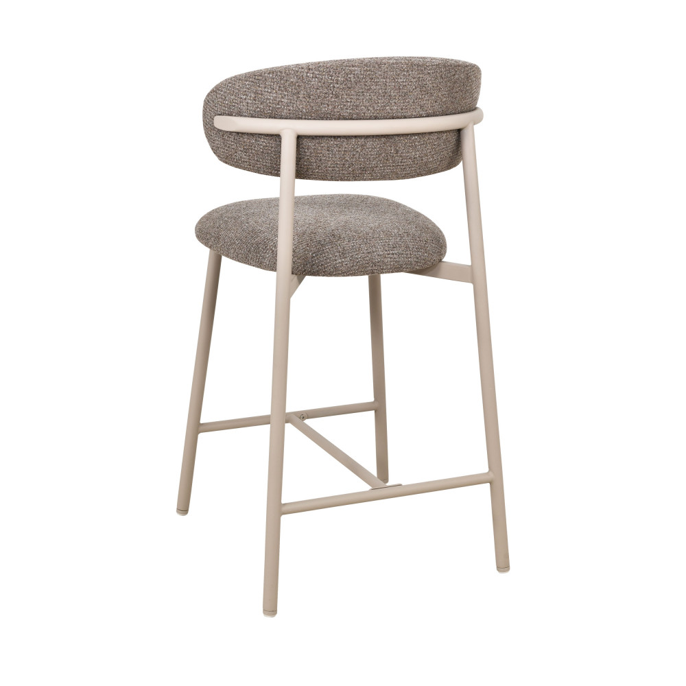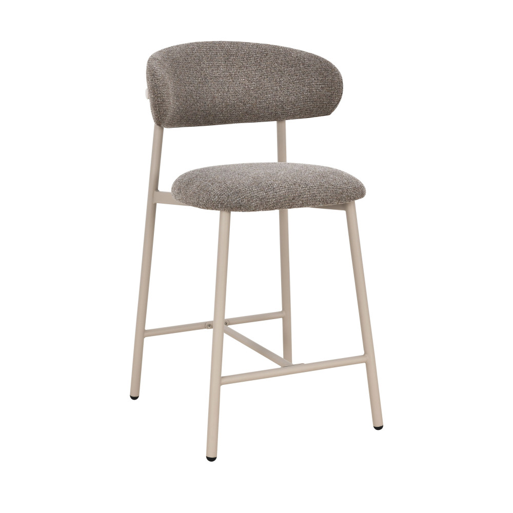 Ces chaises hautes se dotent d'une assise ronde et d'un dossier courbé confortable, tous deux recouverts de tissu (100% polyester) et garnis de mousse, de densité 20 kg/m3 pour le dossier et 24 kg/m3 pour l'assise. Bien stables, ces chaises se tiennent sur des pieds en métal beige avec barreaux repose-pieds. Elles se dotent de patins intégrés dans les embouts de pieds pour protéger vos sols.