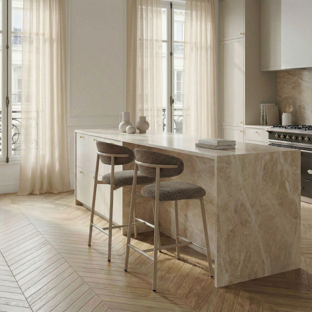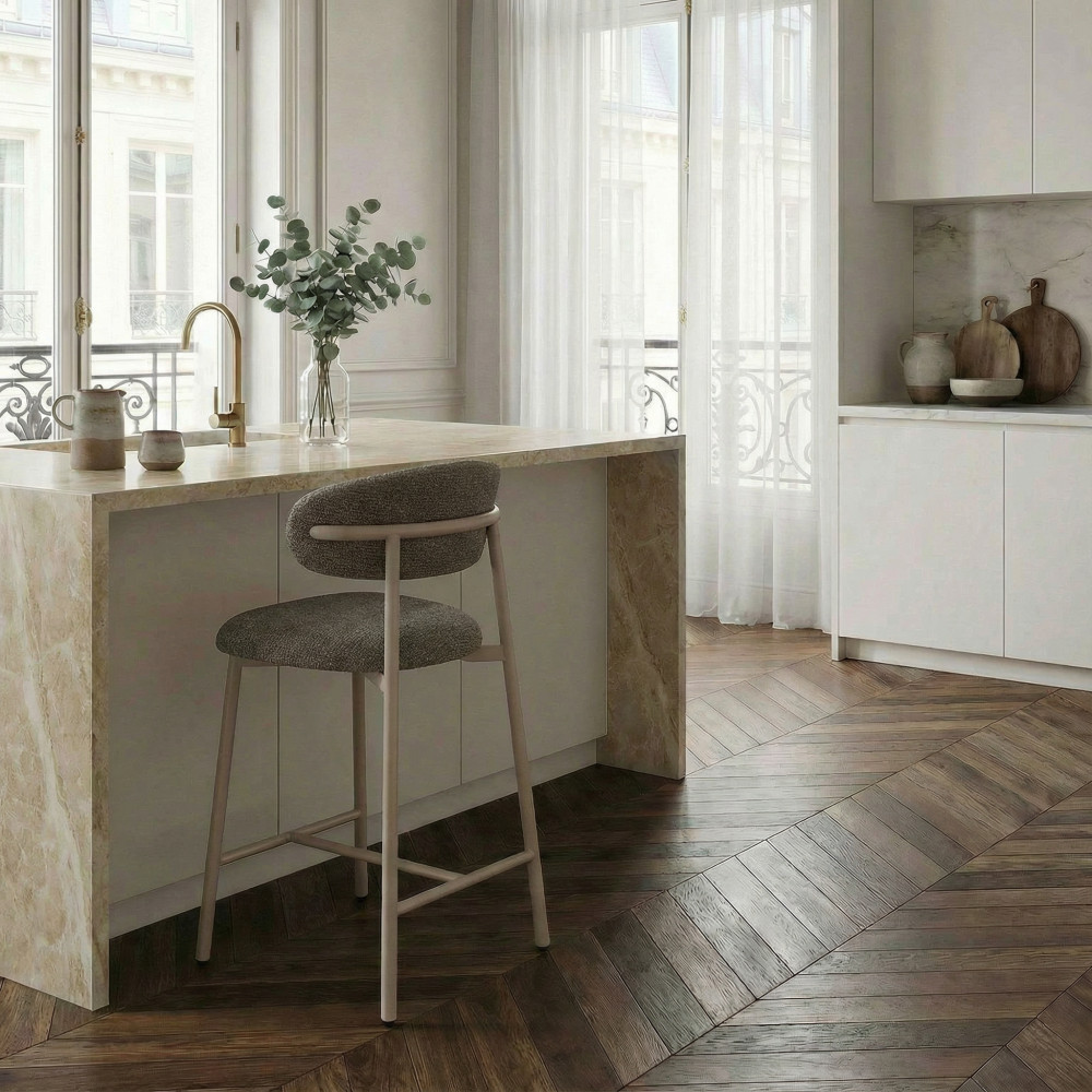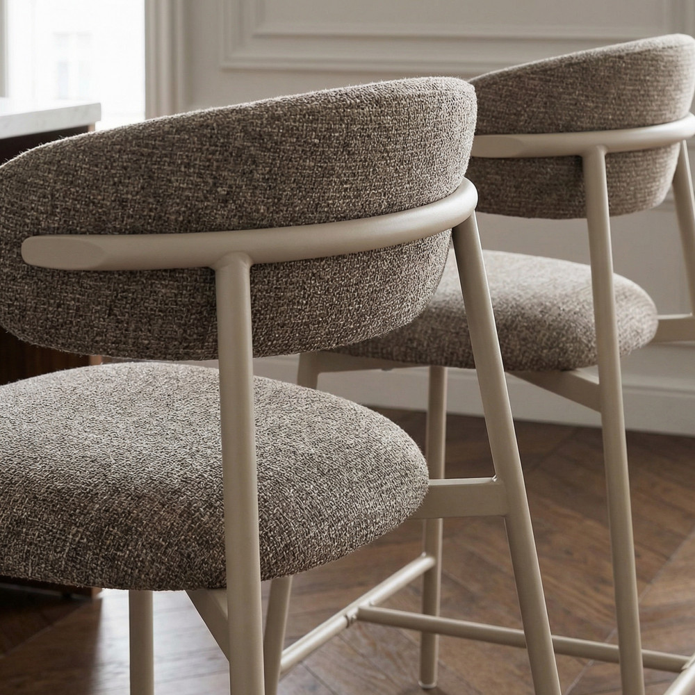 Vous êtes à la recherche de chaises de bar tout confort au look intemporel ? Vous êtes ici bien tombé ! Découvrez sans tarder le lot de 2 chaises de bar en tissu avec pieds beiges Draco de Drawer.