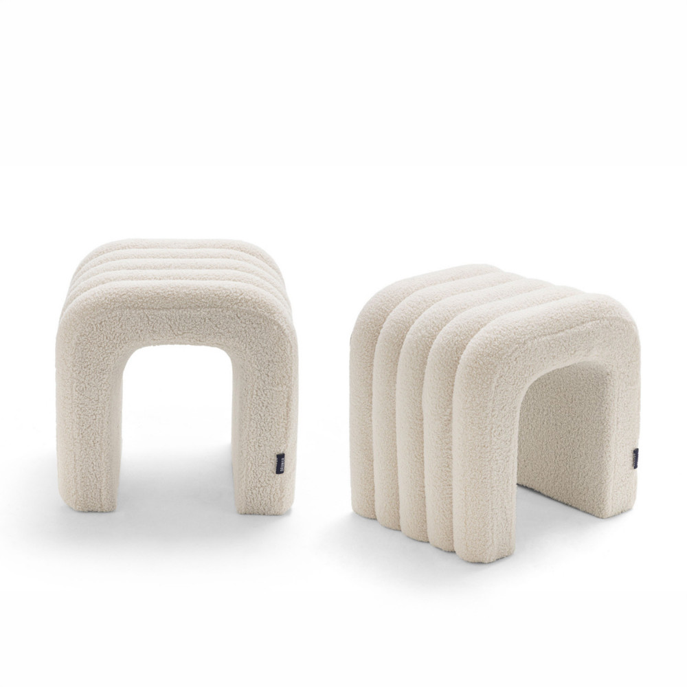 MUI Lot de 2 tabourets rembourrés en tissu bouclette